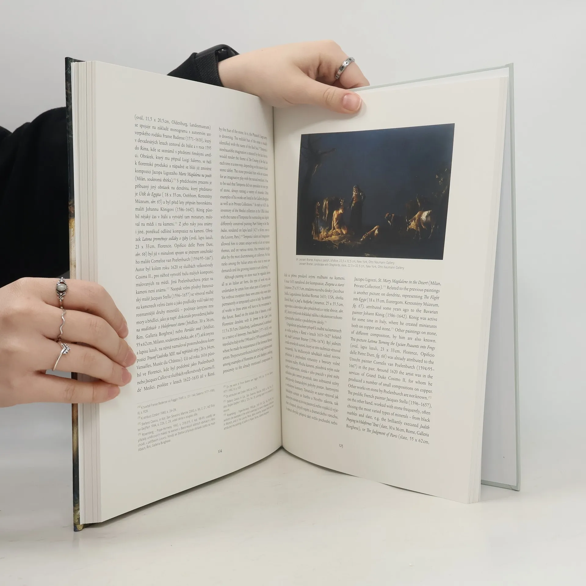 Umělecký experiment v 16 a na začátku 17 století. V 16. století vzbudila zájem malířů i sběratelů uměleckých děl malba na kamenné podložce (např. břidlice, mramor). Jedním z iniciátorů tohoto způsobu malby byl Benátčan Sebastiano del Piombo. Autorka zkoumá jeho dílo i tvorbu dalších malířů, kteří se malbě na kameni věnovali. Zabývá se jak malbami velkých rozměrů, tak obrazy malých formátů, devocionáliemi či kabinetní malbou. Kniha líčí vzestup a vývoj malby na kamenných podložkách v různých oblastech a centrech Itálie, mapuje též její ozvuky ve střední Evropě (zejména v rudolfinské Praze). K rozšíření tohoto způsobu malby jistě přispěla i manýristická záliba v neobvyklých a vzácných materiálech - virtuózní malby na kameni se staly předmětem zájmu milovníků umění a našly své místo ve významných uměleckých sbírkách. Souběžný anglický text.