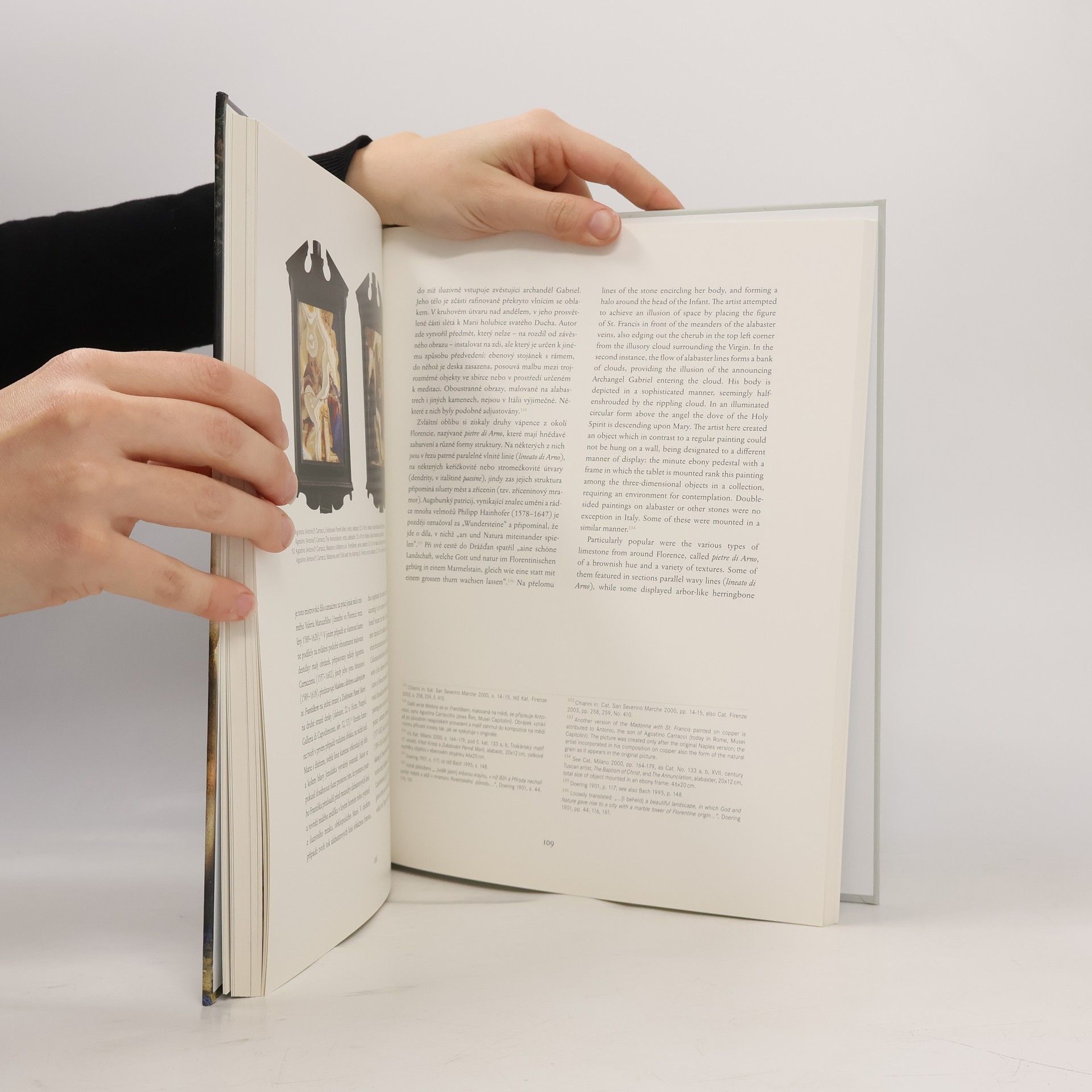 Umělecký experiment v 16 a na začátku 17 století. V 16. století vzbudila zájem malířů i sběratelů uměleckých děl malba na kamenné podložce (např. břidlice, mramor). Jedním z iniciátorů tohoto způsobu malby byl Benátčan Sebastiano del Piombo. Autorka zkoumá jeho dílo i tvorbu dalších malířů, kteří se malbě na kameni věnovali. Zabývá se jak malbami velkých rozměrů, tak obrazy malých formátů, devocionáliemi či kabinetní malbou. Kniha líčí vzestup a vývoj malby na kamenných podložkách v různých oblastech a centrech Itálie, mapuje též její ozvuky ve střední Evropě (zejména v rudolfinské Praze). K rozšíření tohoto způsobu malby jistě přispěla i manýristická záliba v neobvyklých a vzácných materiálech - virtuózní malby na kameni se staly předmětem zájmu milovníků umění a našly své místo ve významných uměleckých sbírkách. Souběžný anglický text.
