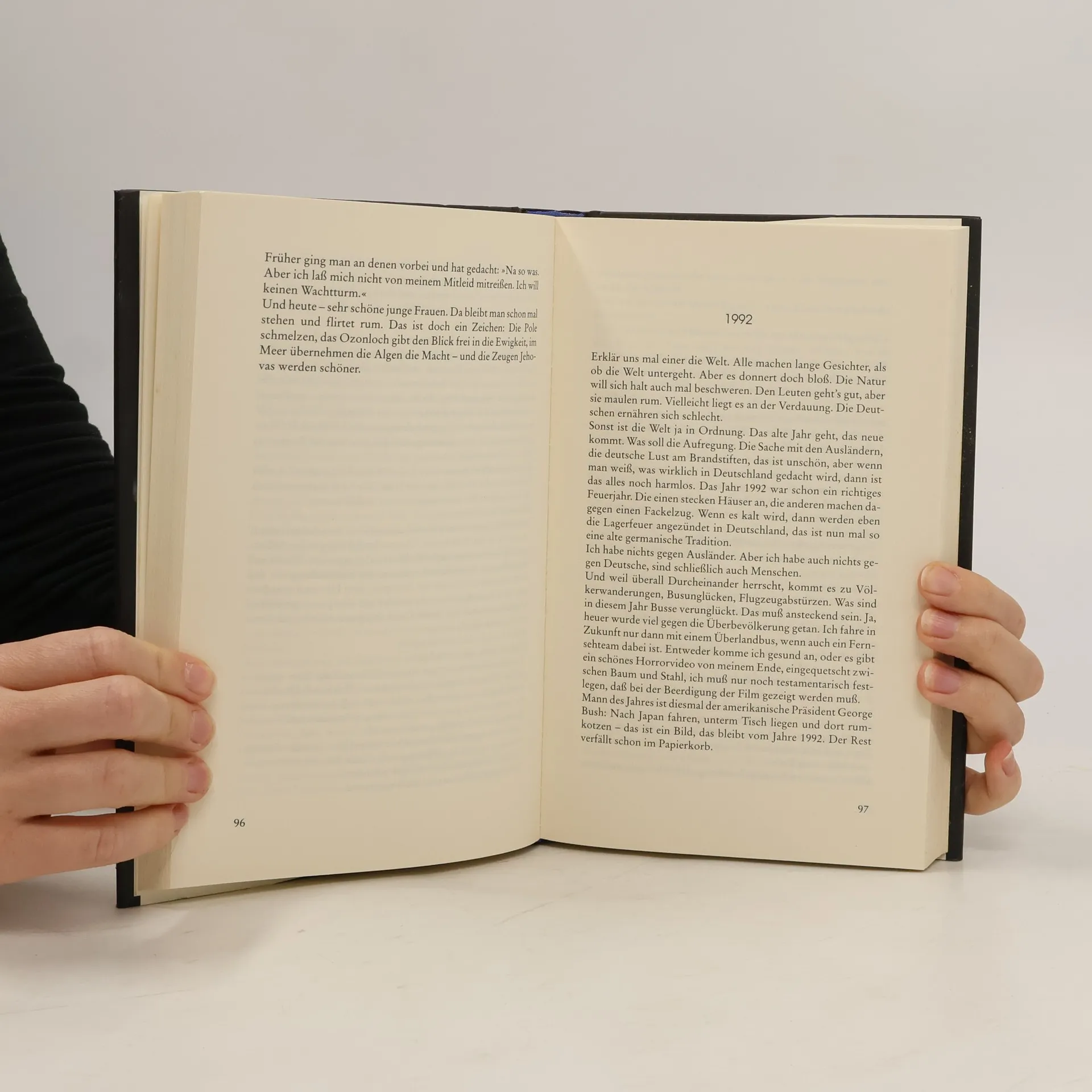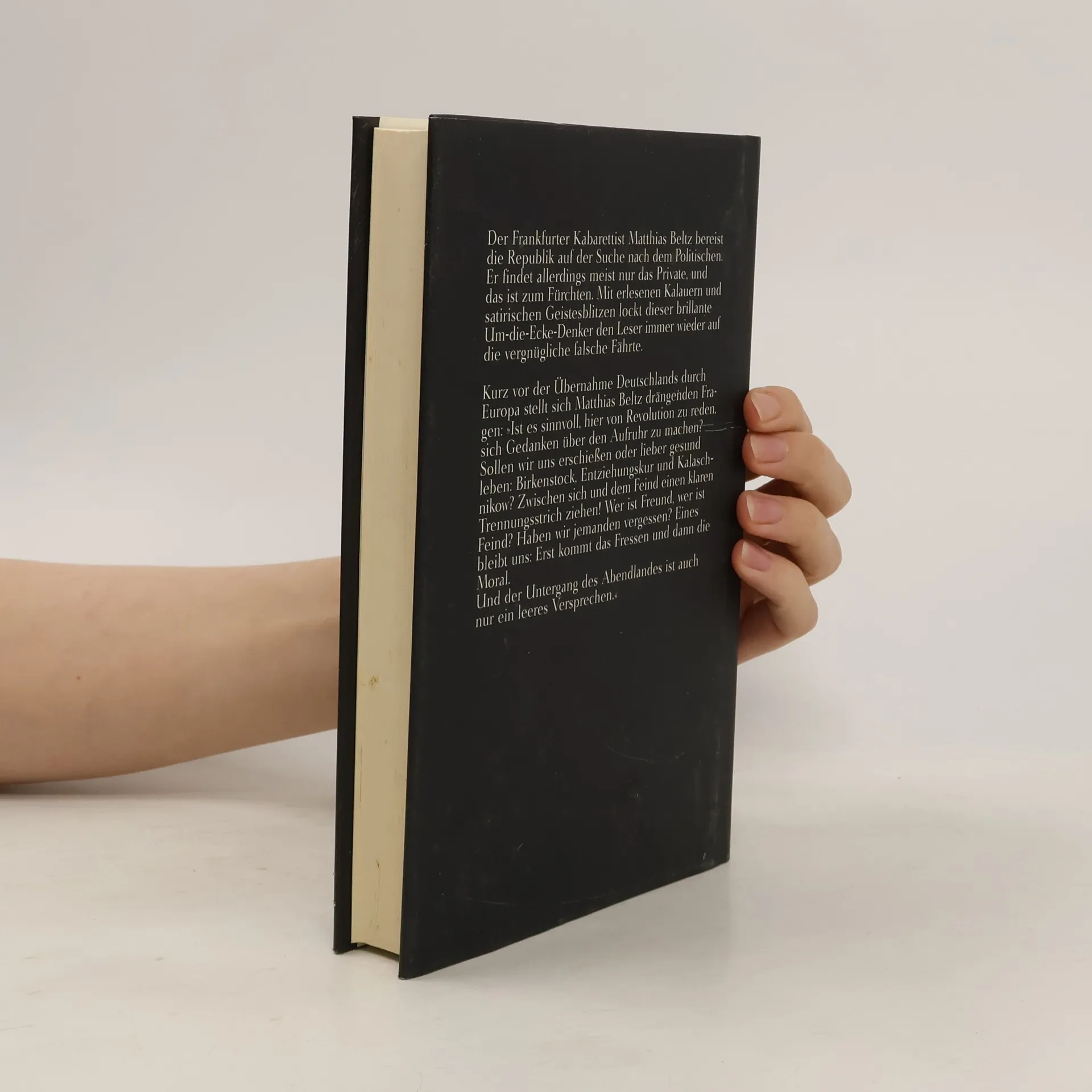 Matthias Beltz reflektiert über die Zeit vor dem Jahrtausendwechsel, die Deutschen und ihre politischen Ziele. Er thematisiert die Schlechtigkeiten der Welt und betrachtet Europa als feudalistische Großrepublik und asiatische Halbinsel. Das Buch ist eine satirische Studie über die deutsche Europherie, mit Fokus auf Hessen und Frankfurt.