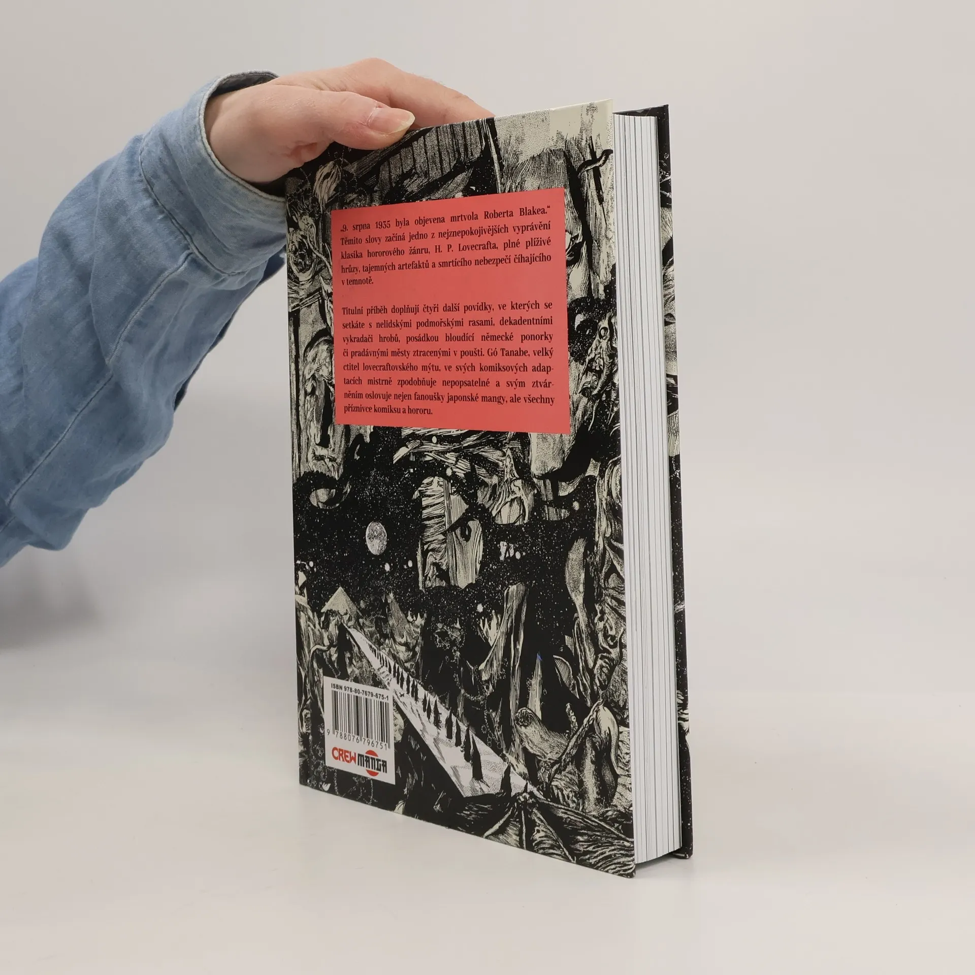 „9. srpna 1935 byla objevena mrtvola Roberta Blakea.“ Těmito slovy začíná jedno z nejznepokojivějších vyprávění klasika hororového žánru, H. P. Lovecrafta, plné plíživé hrůzy, tajemných artefaktů a smrtícího nebezpečí číhajícího v temnotě. Titulní příběh doplňují čtyři další povídky, ve kterých se setkáte s nelidskými podmořskými rasami, dekadentními vykradači hrobů, posádkou bloudící německé ponorky či pradávnými městy ztracenými v poušti. Gó Tanabe, velký ctitel lovecraftovského mýtu, ve svých komiksových adaptacích mistrně zpodobňuje nepopsatelné a svým ztvárněním oslovuje nejen fanoušky japonské mangy, ale všechny příznivce komiksu a hororu.