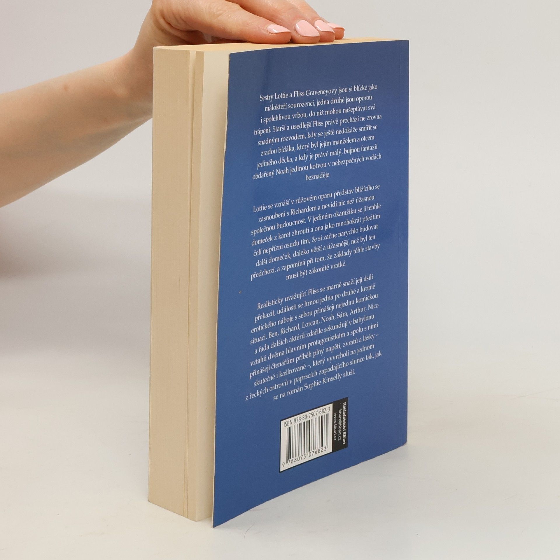 Sestry Lottie a Fliss Graveneyovy jsou si blízké jako málokteří sourozenci, jedna druhé jsou oporou i spolehlivou vrbou, do níž mohou našeptávat svá trápení. Starší a usedlejší Fliss právě prochází ne zrovna snadným rozvodem, kdy se ještě nedokáže smířit se zradou bídáka, který byl jejím manželem a otcem jediného děcka, a kdy je právě malý, bujnou fantazií obdařený Noah jedinou kotvou v nebezpečných vodách beznaděje. Lottie se vznáší v růžovém oparu představ blížícího se zasnoubení s Richardem a nevidí nic než úžasnou společnou budoucnost. V jediném okamžiku se jí tenhle domeček z karet zhroutí a ona jako mnohokrát předtím čelí nepřízni osudu tím, že si začne narychlo budovat další domeček, daleko větší a úžasnější, než byl ten předchozí, a zapomíná při tom, že základy téhle stavby musí být zákonitě vratké. Realisticky uvažující Fliss se marně snaží její úsilí překazit, události se hrnou jedna po druhé a kromě erotického náboje s sebou přinášejí nejednu komickou situaci. Ben, Richard, Lorcan, Noah, Sára, Arthur, Nico a řada dalších aktérů zdařile sekundují v babylonu vztahů dvěma hlavním protagonistkám a spolu s nimi přinášejí čtenářům příběh plný napětí, zvratů a lásky – skutečné i kašírované –, který vyvrcholí na jednom z řeckých ostrovů v paprscích zapadajícího slunce tak, jak se na román Sophie Kinselly sluší.