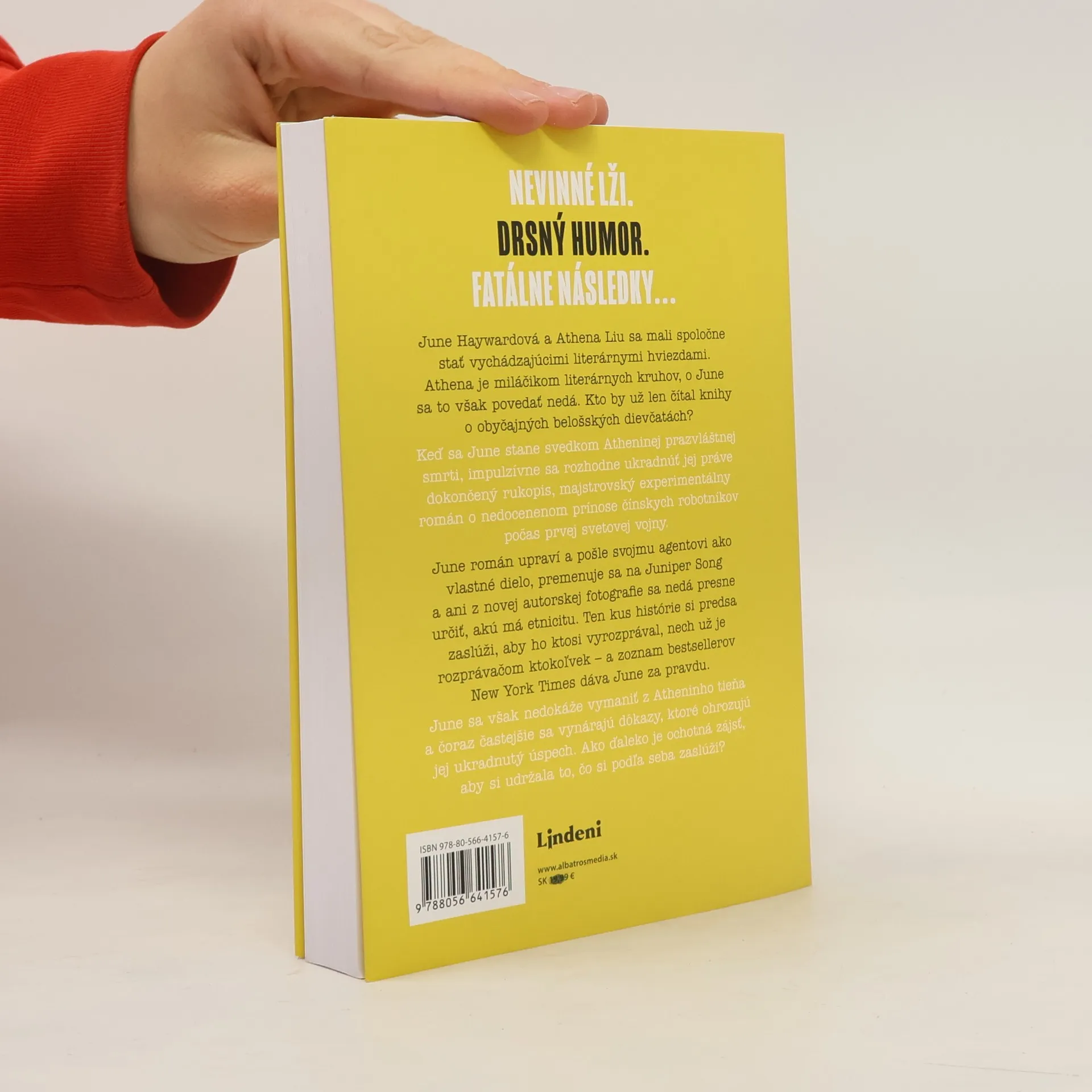 Nevinné lži. Drsný humor. Fatálne následky... June Haywardová a Athena Liu sú vychádzajúce literárne talenty. Athena je miláčikom literárnych kruhov, o June sa to však povedať nedá. Keď sa June stane svedkom Atheninej prazvláštnej smrti, impulzívne sa rozhodne ukradnúť jej práve dokončenýmajstrovský rukopis. Čoraz častejšie sa však vynárajú dôkazy, ktoré ohrozujú jej ukradnutý úspech. Ako ďaleko je ochotná zájsť, aby si udržala to, čo si podľa seba zaslúži?