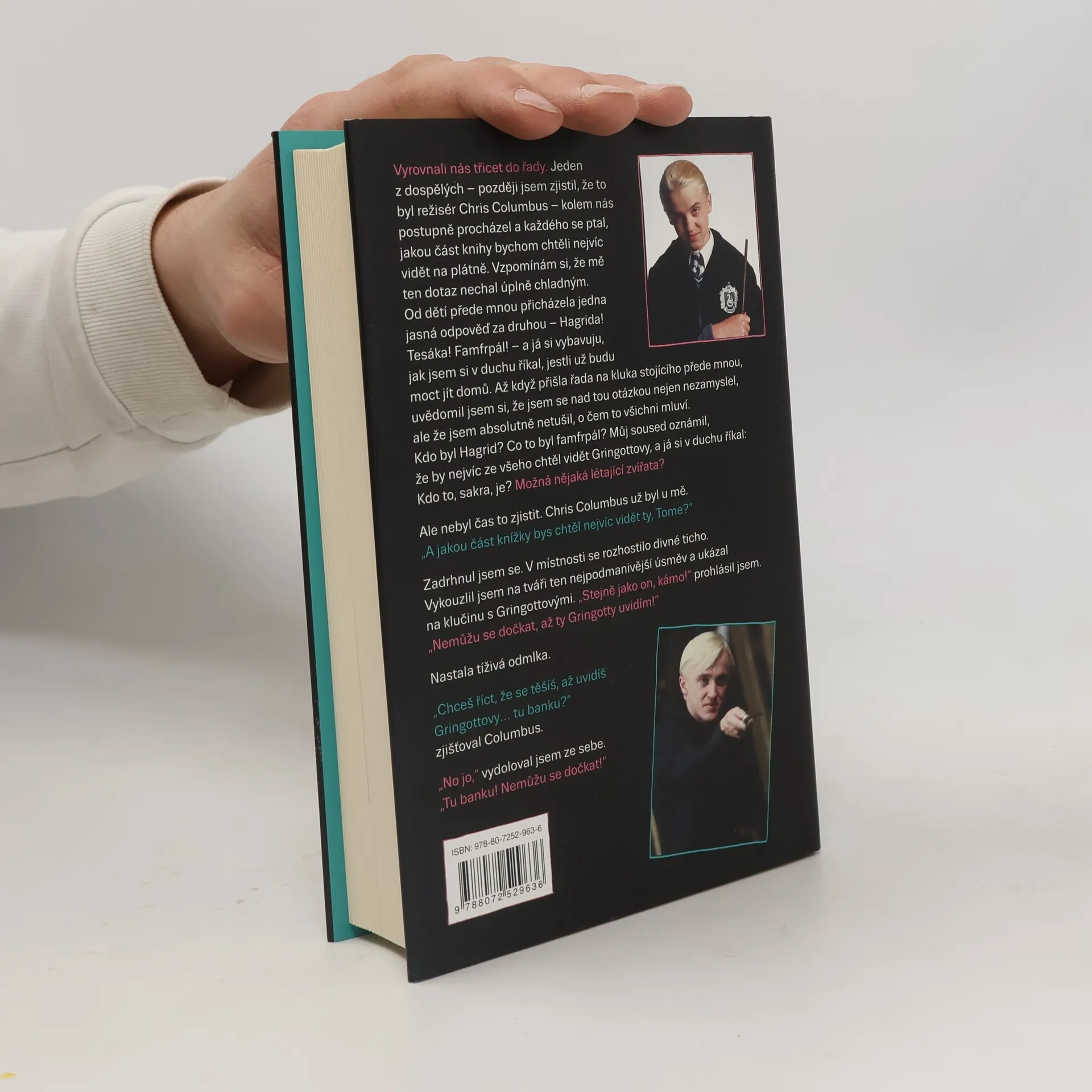 Naprostá nezbytnost pro každého fanouška Harryho Pottera. S předmluvou filmové Hermiony – herečky Emmy Watsonové. Doplněno o dosud nezveřejněné fotky z natáčení filmů, které změnily svět. Jaké bylo dospívání uprostřed natáčení toho největšího filmového hitu posledních dekád? Filmový Draco Malfoy, hlavní rival Harryho Pottera, se po letech rozhodl svěřit s těmi nejosobnějšími i nejvtipnějšími vzpomínkami na více než deset let natáčení filmů, jejichž knižní předloha změnila svět a stala se unikátním fenoménem a popkulturním hitem. Jen málokdo může tvrdit, že vystudoval tu nejprestižnější kouzelnickou školu světa v Bradavicích. Herec Tom Felton si touto zkušenosti prošel, byť patřil do té nejméně populární a nejobávanější zmijozelské koleje. -Kdo z filmového obsazení Tomovi nejvíce přirostl k srdci? -Jak to ve skutečnosti bylo s Tomovým románkem s filmovou Hermionou Emmou Watsonovou? -A co dokázalo doběla rozčílit obávaného profesora Snapea? Varování! Tato kniha vás přiměje silně přehodnotit vztah k jedné z nejnenáviděnějších filmových postav všech dob.