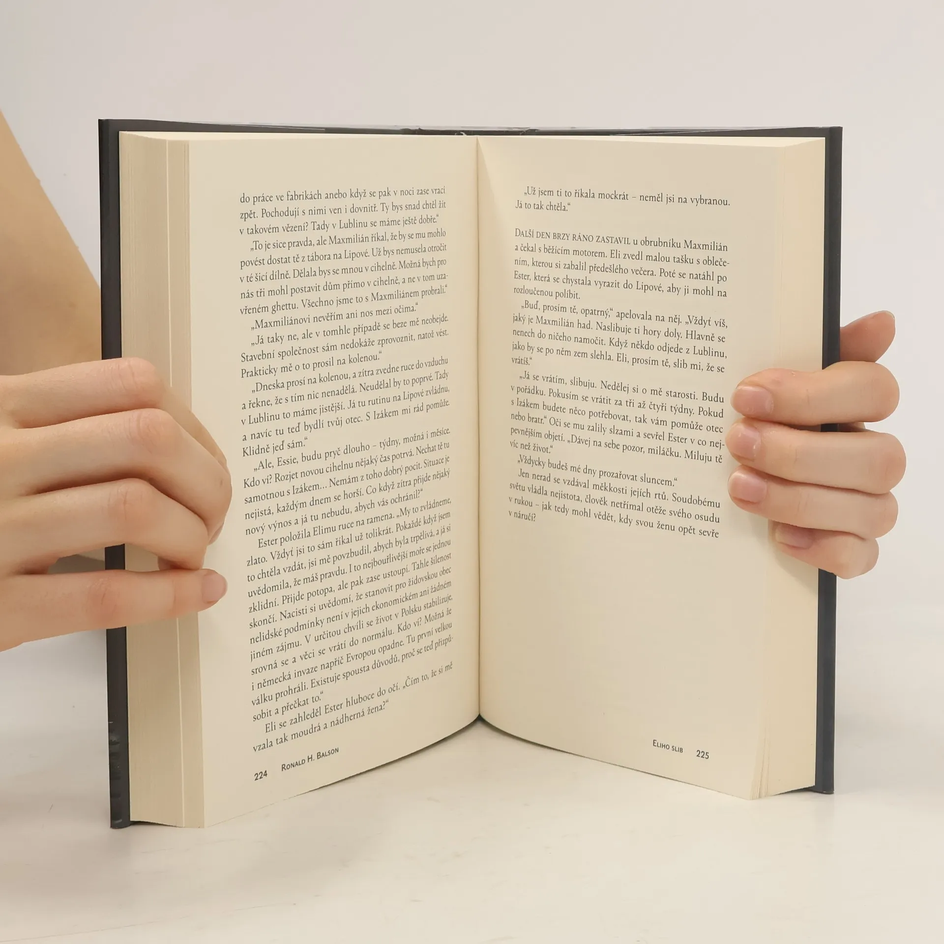 Eliho slib je mistrným dílem historické fikce, jehož děj se odvíjí ve třech časových pásmech: v nacisty okupovaném Polsku, americké zóně poválečného Německa a v Chicagu během války ve Vietnamu. Ronald H. Balson, nositel Národní židovské knižní ceny za literaturu, v knize zkoumá cenu války, ambivalentní hodnotu přežití a nezlomitelnou sílu rodinných pout. 1939: Eli Rosen žije se svou ženou Ester a jejich malým synkem v polském Lublinu, kde má jeho rodina stavební společnost. Ta je vyvlastněna nacisty a svěřena do správy Maxmiliánovi Poleskému, bezpáteřnímu šmelináři. Vznikne tak vratké spojenectví: pokud se Eli bude starat o obchod, Maxmilián zajistí jeho rodině bezpečí. Dostane Poleski svému slibu, nebo jejich vztah skončí zradou a tragédií? 1946: Eli spolu se synem bydlí ve Spojenci ovládaném Německu a pevně doufá v udělení víz do Ameriky. Svou ženu od války neviděl. Po táboře se potuluje muž, jenž prodává nelegální americká víza – nezná její osud třeba on? 1965: Eli si pronajme pokoj v chicagské čtvrti Albany Park. Je na misi. S trpělivostí, mazaností a neutuchajícím úsilím se proplétá neznámými ulicemi Chicaga i nebezpečnou politickou hrou a pátrá přitom po pravdě o Esteřině zmizení, jež mu poslední čtvrt století zůstává záhadou. Silný a emotivní román Ronalda H. Balsona Eliho slib je znamenitým, obohacujícím příběhem o druhé světové válce a manželově honbě za spravedlností.