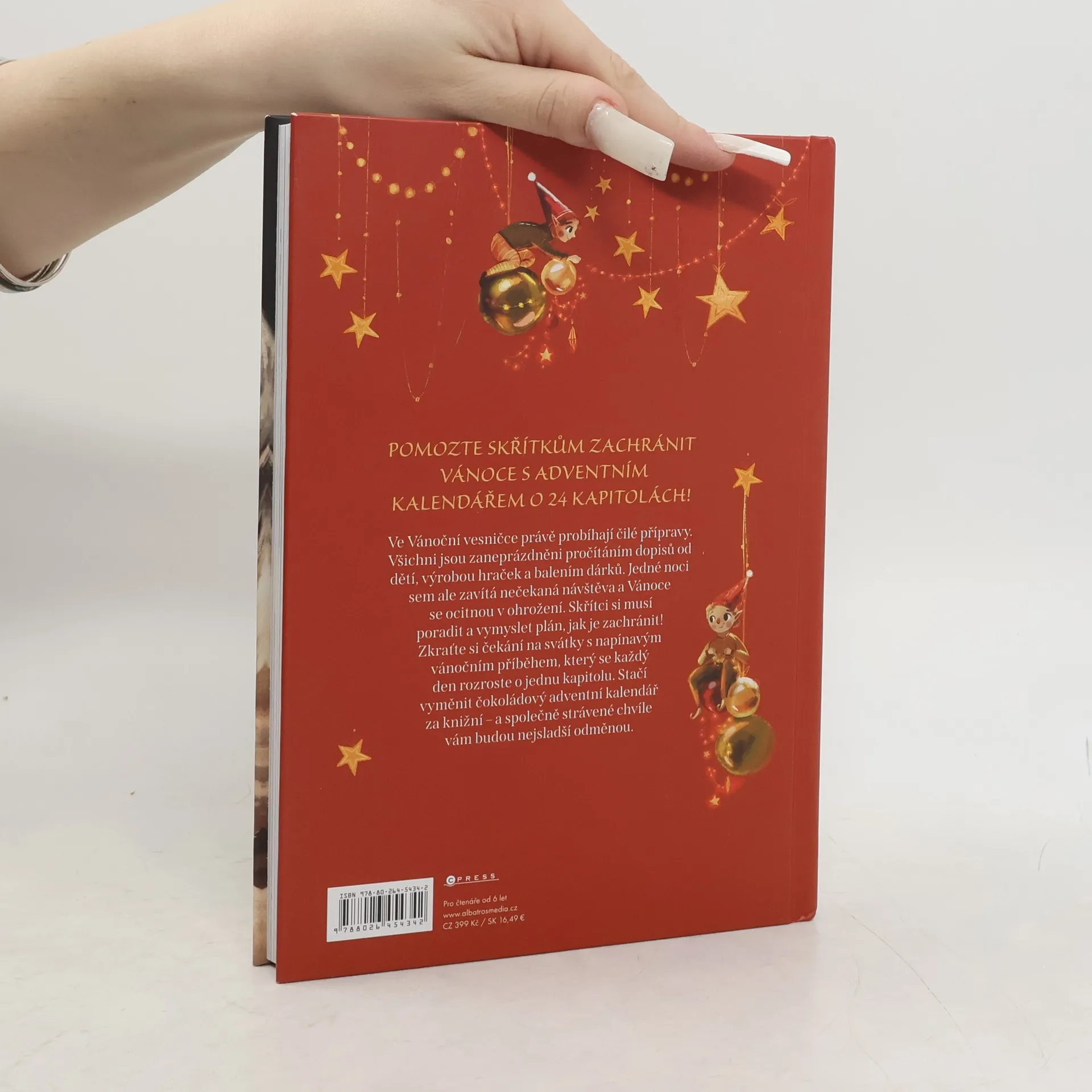Pomozte skřítkům zachránit Vánoce s adventním kalendářem o 24 kapitolách! Ve Vánoční vesničce právě probíhají čilé přípravy. Všichni jsou zaneprázdněni pročítáním dopisů od dětí, výrobou hraček a balením dárků. Jedné noci sem ale zavítá nečekaná návštěva a Vánoce se ocitnou v ohrožení. Skřítci si musí poradit a vymyslet plán, jak je zachránit! Zkraťte si čekání na svátky s napínavým vánočním příběhem, který se každý den rozroste o jednu kapitolu. Stačí vyměnit čokoládový adventní kalendář za knižní – a společně strávené chvíle vám budou nejsladší odměnou.