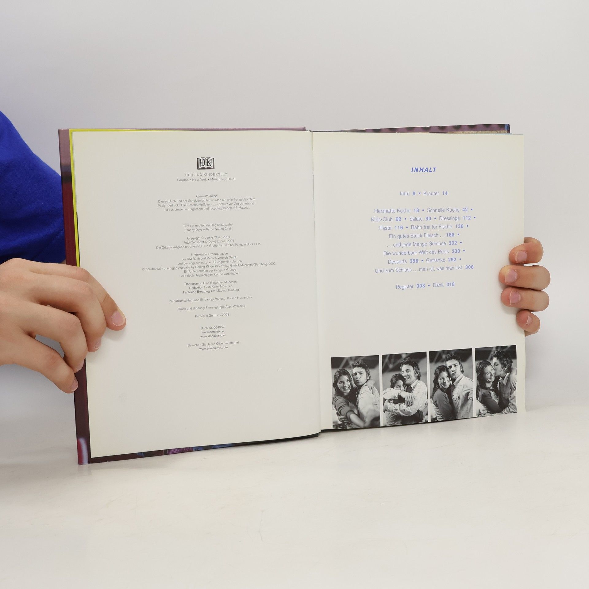 Jamie Oliver startete seine phänomenale Karriere 1998 als jüngster, sympathischster und erfolgreichster TV-Koch mit der BBC-Koch-Kultserie „The Naked Chef“. Sechs Millionen Briten lassen sich regelmäßig von ihm für seine „nackte“, d. h. einfache und köstliche neue Küche begeistern. Jamies Credo ist es, mit den qualitativ besten Zutaten ohne großen Aufwand geschmackvolle, aber leichte Gerichte zuzubereiten. Sein Kochbuch enthält über 100 verblüffend einfache und raffinierte Rezepte für Fleisch-, Fisch- und vegetarische Gerichte, für Pasta, Salate, Desserts und selbstgebackenes Brot. Lust am Kochen und Essen ist für Jamie Ausdruck seiner Lebenslust. Mit lockeren Texten, frechen Kommentaren, persönlichen Fotos und Geschichten gelingt es ihm, dieses Gefühl im Nu auf die Leserinnen und Leser seiner Bücher zu übertragen.