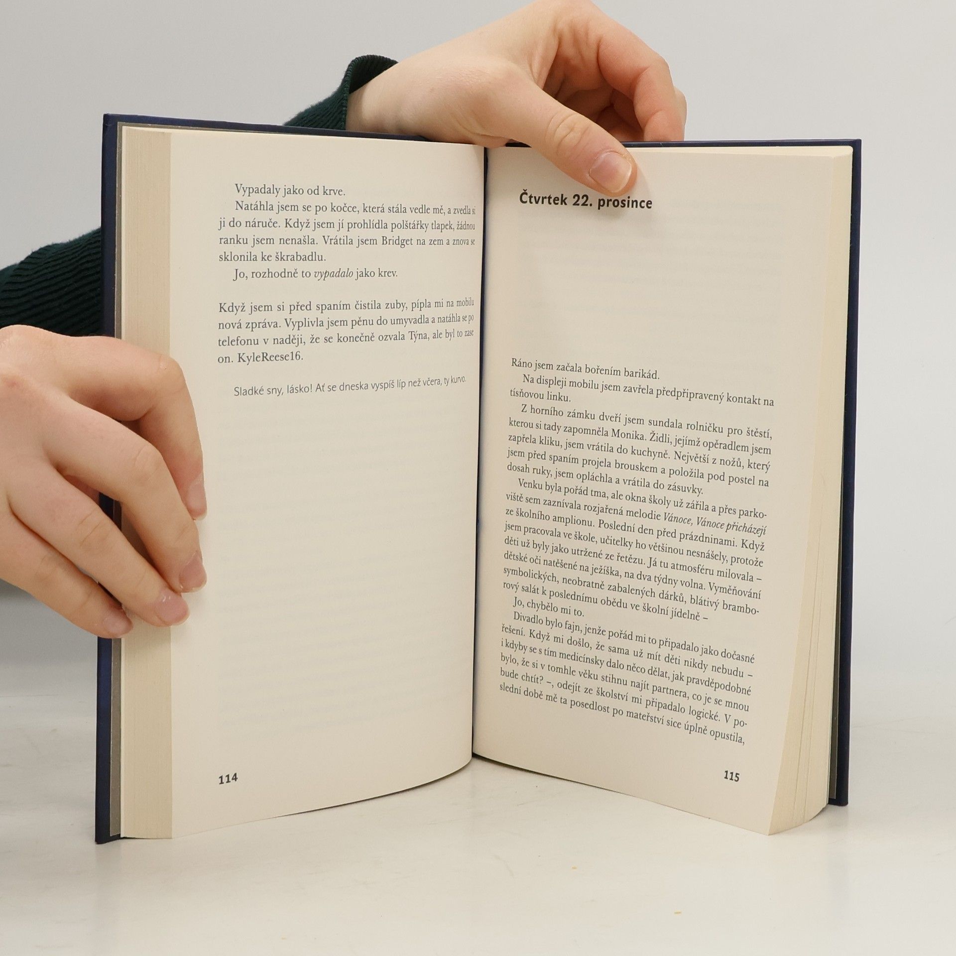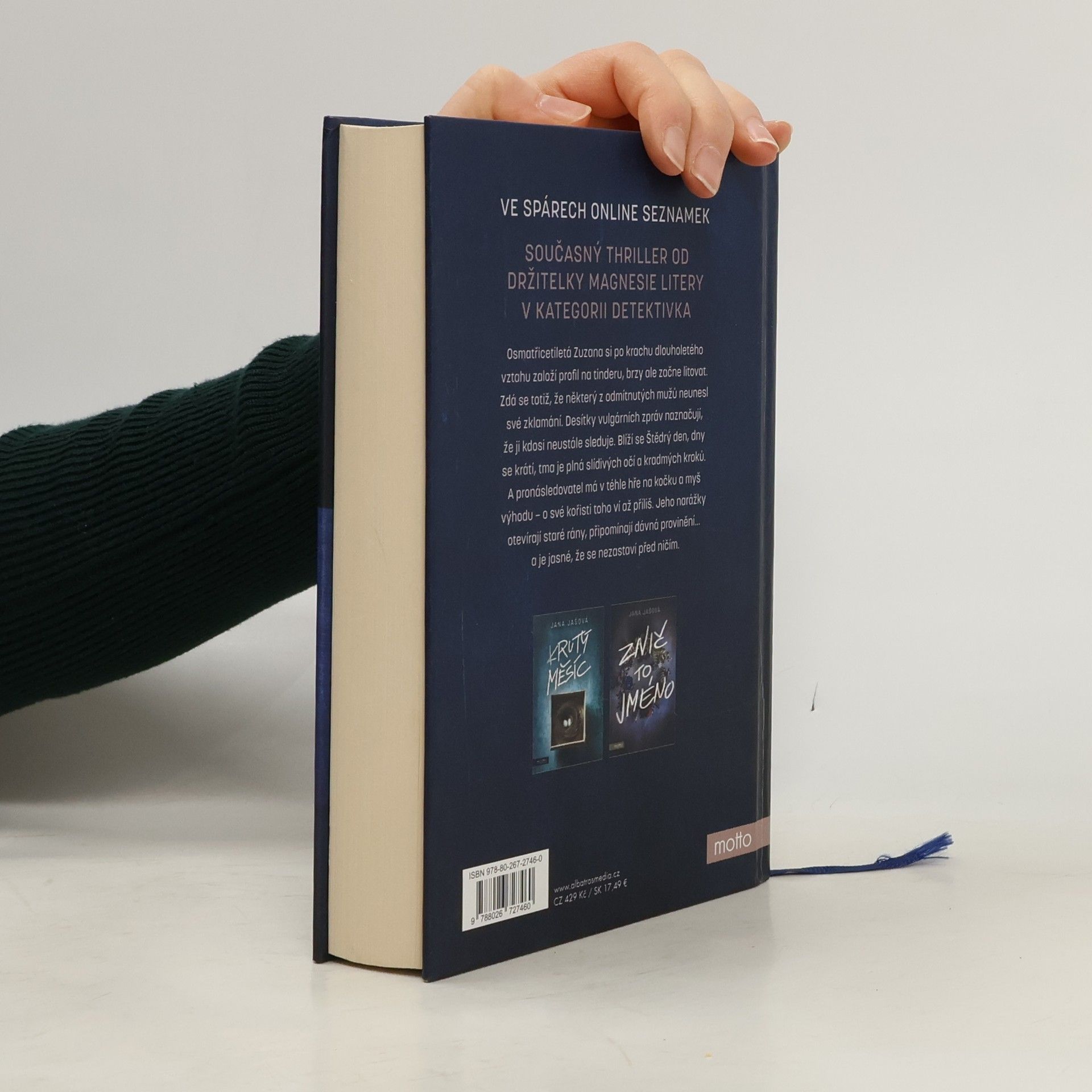 Současný thriller od držitelky Magnesie Litery v kategorii "detektivka" za rok 2024 využívá téma online seznamek, kde při hledání lásky můžete riskovat i vlastní život. Osmatřicetiletá Zuzana si po krachu dlouholetého vztahu založí profil na Tinderu, brzy ale začne litovat. Zdá se totiž, že některý z odmítnutých mužů neunesl své zklamání. Desítky vulgárních zpráv naznačují, že ji kdosi neustále sleduje. Blíží se Štědrý den, dny se krátí, tma je plná slídivých očí a kradmých kroků. A pronásledovatel má v téhle hře na kočku a myš výhodu - o své kořisti toho ví až příliš. Jeho narážky otevírají staré rány, připomínají dávná provinění... a je jasné, že se nezastaví před ničím. Nakladatelská anotace.