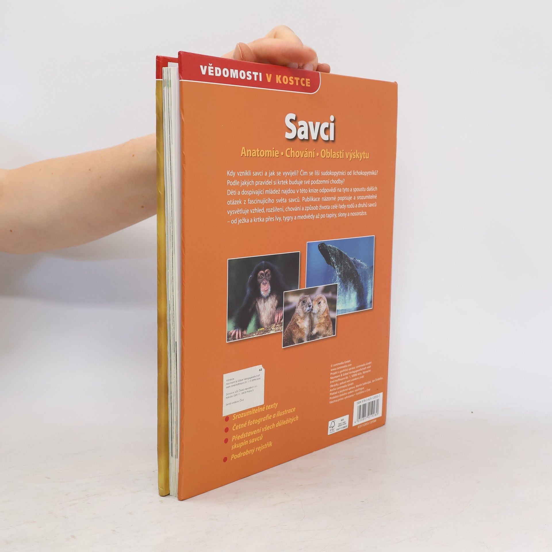 Anatomie - chování - oblasti výskytu Ponoř se do světa vědomostí a poznání. Čím se liší lenochod od koaly? Jak vypadají divoce žijící příbuzní našich domácích koček a psů? Které jsou nejdůležitější skupiny savců? Hledáš odpovědi na tyto a spoustu dalších otázek z fascinujícího světa zvířat a biologie? Potom se podívej do této knihy a objev nejrůznější zajímavosti ze života savců. Dozvíš se, kde žijí které druhy opic nebo jak si krtek buduje své podzemní chodby. Můžeš si prohlédnout kostru žirafy nebo se ponořit pod mořskou hladinu do světa kytovců, tuleňů a delfínů. Informativní a poutavé texty a přes 200 fotografií a ilustrací představují nejdůležitější druhy savců - od antilop až po žirafy.