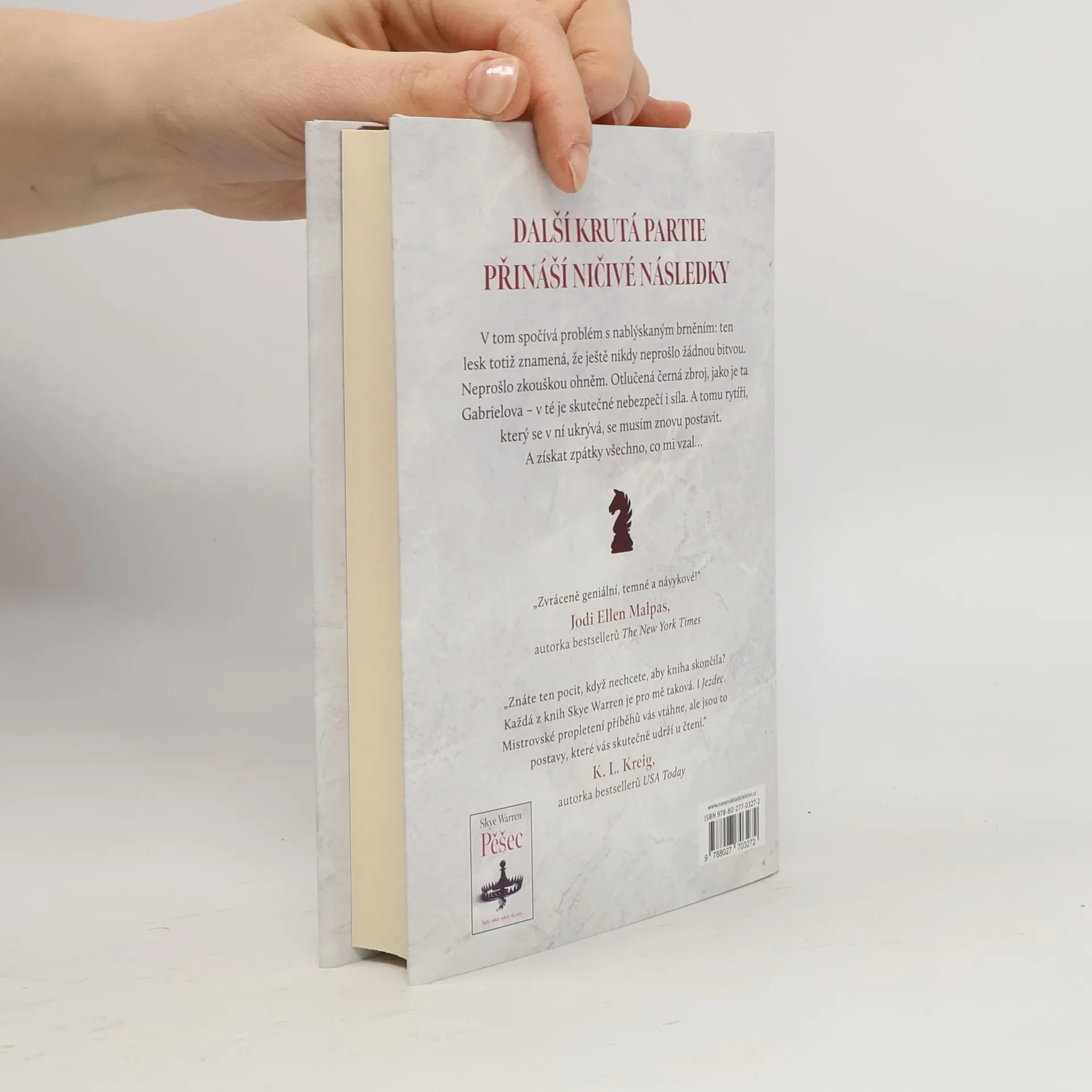 Gabriel Miller mi všechno vzal. Rodinu. Nevinnost. Domov. Jediné, co mi ještě zbylo, je odhodlání získat zpět vše, co mi patří. Myslí si, že mě porazil. Myslí si, že vyhrál. Jenomže mu nedochází, že každý pěšák má šanci stát se královnou. A hra teprve začala. Vyprávění plné zvratů a napětí, pokračování zvláštního vztahu miliardáře a krásky ze zkrachovalé rodiny. Město, jemuž vládnou mocní, kteří si střeží svá tajemství. Touha, pomsta a láska. Takové je pokračování Pěšáka, Jezdec.
