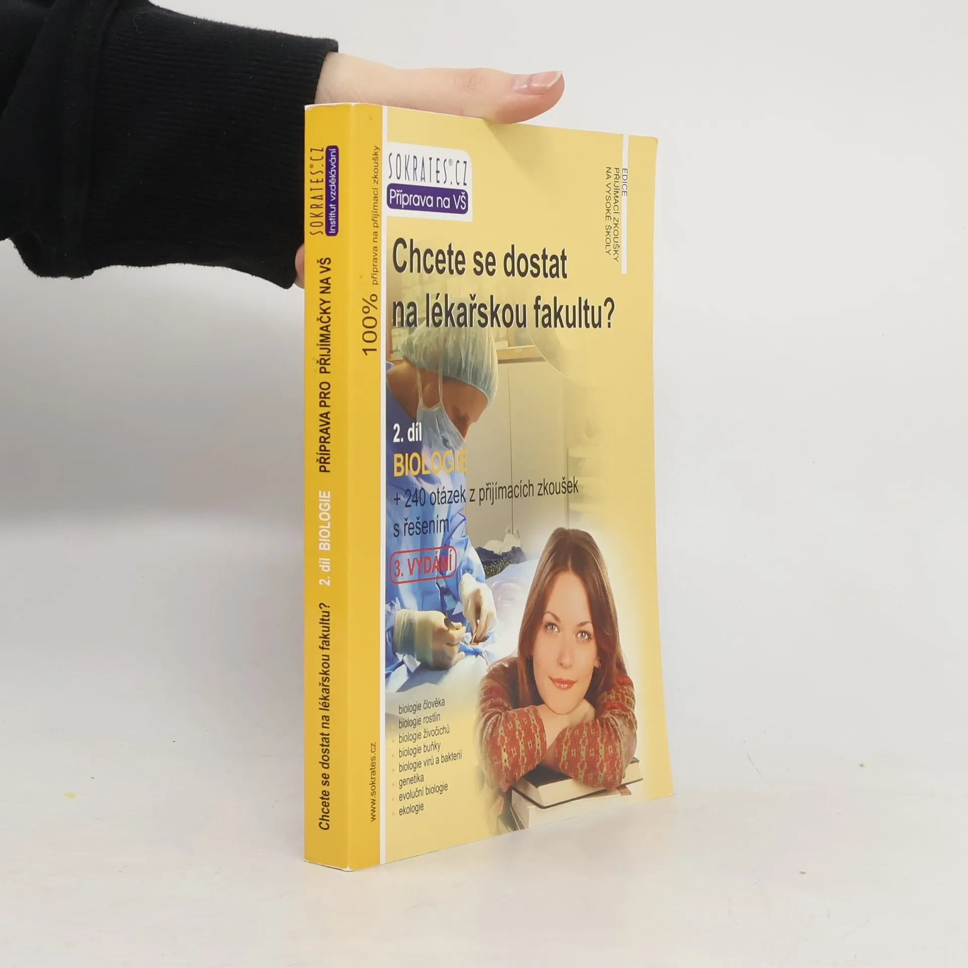 Kniha je jedinečnou pomůckou určenou uchazečům o studium na lékařských, veterinárních, farmaceutických, zdravotně sociálních, přírodovědeckých fakultách, fakultách zdravotnických studií a dalších fakultách, kde se skládají přijímací zkoušky z biologie. Obsahuje teoretické shrnutí problematiky +240 testových otázek z minulých přijímacích zkoušek s řešením, a to z biologie. Určeno: lékařské fakulty UK v Praze, Plzni a Hradci Králové, Lékařská fakulta MU v Brně, Lékařská fakulta a Fakulta zdravotnických studií UP v Olomouci, Lékařská fakulta v Ostravě, Veterinární a farmaceutická univerzita Brno, Farmaceutická fakulta v Hradci Králové, Přírodovědecká fakulta Univerzity Karlovy v Praze, Zdravotně sociální fakulta JČU v Českých Budějovicích, Fakulta zdravotnických studií ZČU v Plzni, Fakulta zdravotnických studií Univerzity Pardubice, Ústav zdravotnických studií UJEP v Ústí nad Labem, Ústav zdravotnických studií TUL a další vysoké školy. Publikaci je vhodné zkombinovat s vysvětlením problem