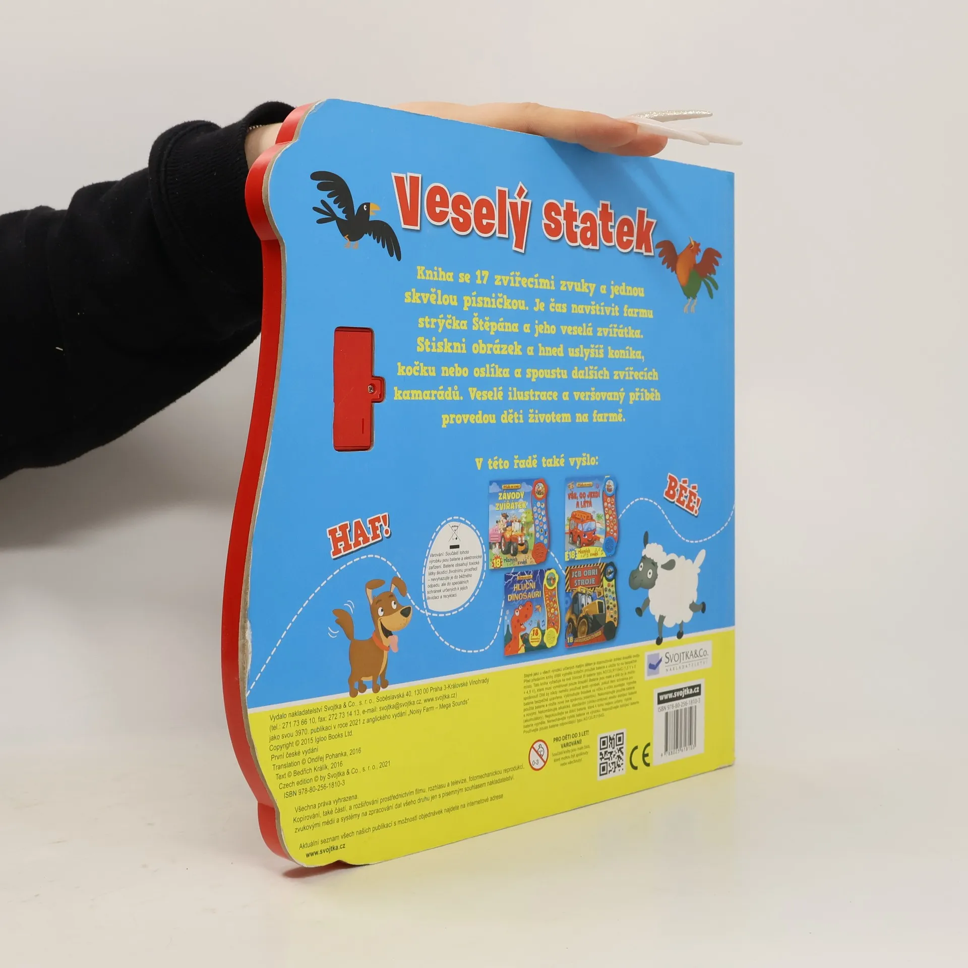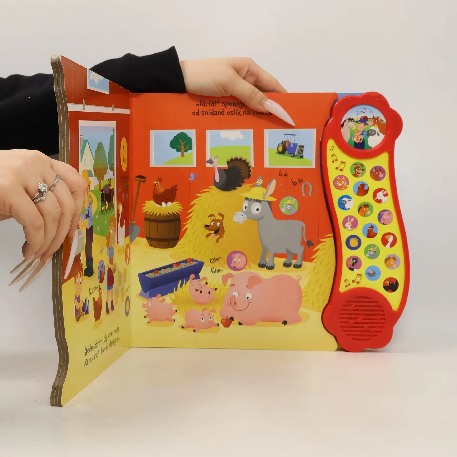 Kniha se 17 zvířecími zvuky a jednou skvělou písničkou. Je čas navštívit farmu strýčka Štěpána a jeho veselá zvířátka. Stiskni obrázek a hned uslyšíš koníka, kočku nebo oslíka a spoustu dalších zvířecích kamarádů. Veselé ilustrace a veršovaný příběh provedou děti životem nafarmě.
