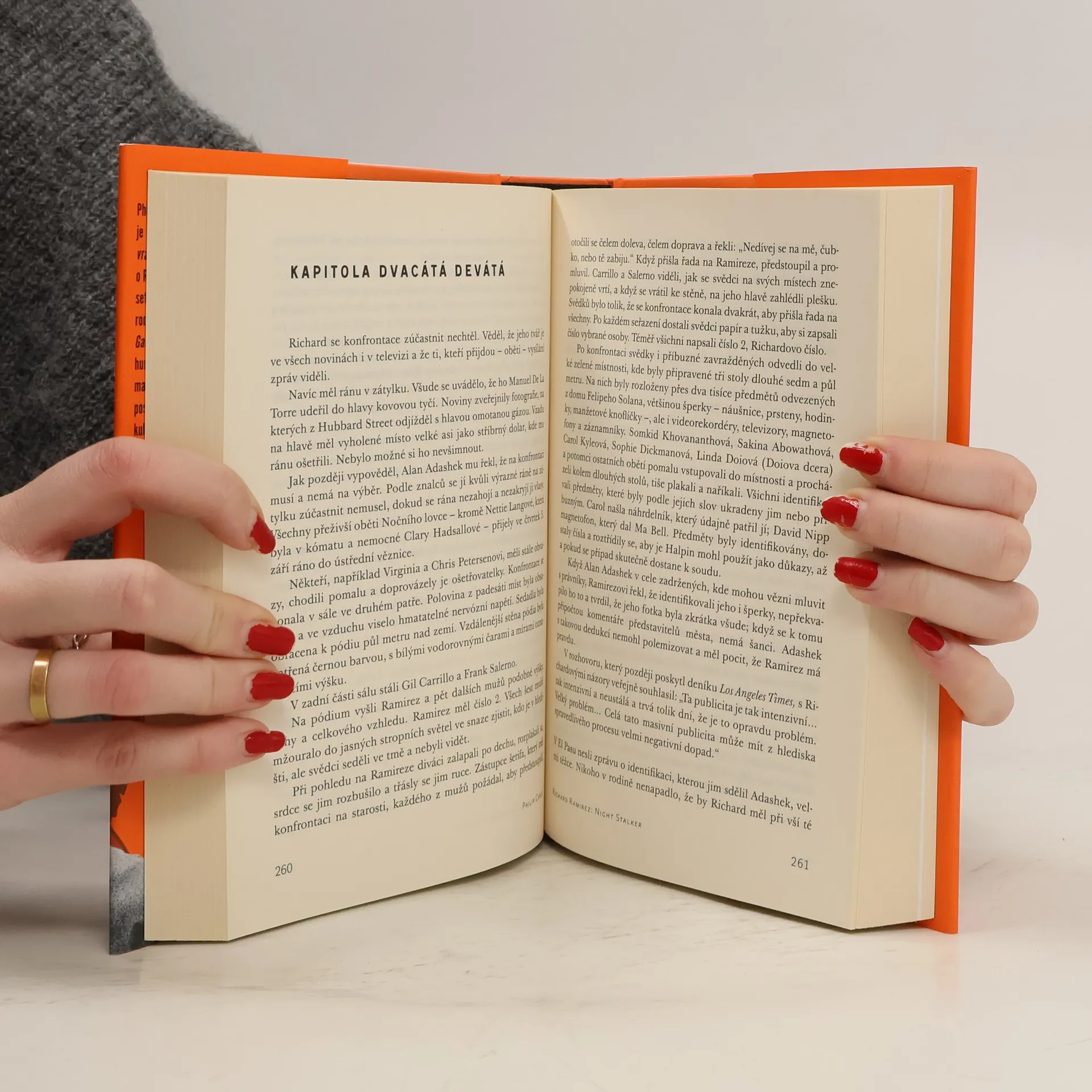 „Kdo je ten hezký kluk?,“ zeptala se zpěvačka Madonna, když šla do vězení navštívit svého manžela Seana Penna. V cele vedle herce seděl Richard Ramirez, obávaný Noční lovec, odsouzený 19x na smrt. I jeho charismatem a obrovským zástupem fanynek, z nichž si jednu dokonce v kriminále vzal, zatímco jiné se mu nenápadně odhalovaly během návštěv a on při tom masturboval rukou v kapse, se zabývá kniha Philipa Carla. Nejde ji nesrovnávat s nedávno vydaným Tedem Bundym, Carlův styl je chladnější, zpravodajský a většinu textu si drží profesionální odstup, byť jeho lehce ironické komentování Ramirezových fanynek v závěru je kouzelné. Autor vás hned zkraje vrhne do vražedného běsnění, kdy jeden bestiální čin střídá druhý a nenechá vás vydechnout. Brutalitu Ramirezova počínání umocňuje Carlův věcný projev a opravdu mrazivé popisy útoků obávaného vraha se na vás valí jako lavina. Po mordech se autor vrátí do Richardova dětství, poukáže na vliv bratrance, jehož kratochvílí ve Vietnamu bylo znásilňovat a zabíjet a portrét nelítostného vraha je kompletní. Vyčerpávající je táhnoucí se soudní proces, největší slabina celé knihy, Carlo jde opravdu do detailů a průběh líčení je chvílemi zdlouhavý, nejzajímavější je na něm Ramirezovo chování - od řinčení řetězy a provolávání slávy Satanovi, přes vrčení na média a úsměvy směrem k obdivovatelkám, či chvilky, kdy rošťácky házel prasátka soudci do očí pomocí kousku alobalu nalepeném na poznámkovém bloku.