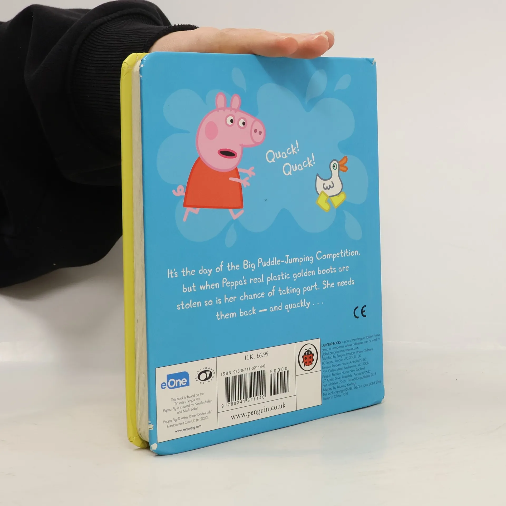 Poor Peppa! Mrs Duck has stolen Peppa's special golden wellies and now she can't compete in the Puddle-Jumping Competition! Can Peppa and her friends get the golden wellies back in time? This delightful picture book is based on the Peppa Pig film, The Golden Boots.