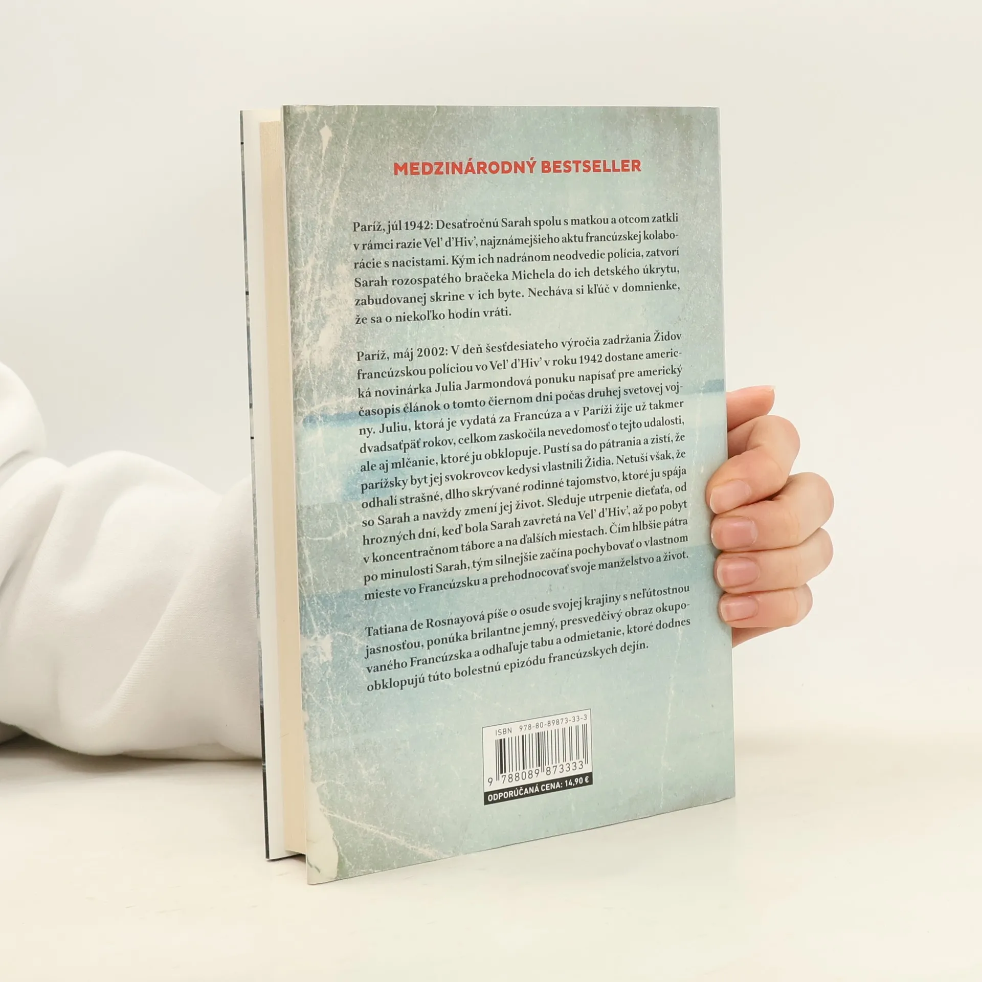 Paríž, júl 1942: Desaťročná Sarah je spolu s rodičmi zatknutá počas razie Vel’ d’Hiv’, známej kolaborácie s nacistami. Pred odvedením polície ukryje svojho mladšieho bračeka Michela do detskej skrine a necháva si kľúč, veriac, že sa čoskoro vráti. Paríž, máj 2002: Na šesťdesiate výročie zadržania Židov dostane americká novinárka Julia Jarmondová ponuku napísať článok o tejto tragickej udalosti. Po takmer dvadsiatich piatich rokoch života vo Francúzsku ju prekvapí nevedomosť a mlčanie okolo tejto témy. Julia sa pustí do pátrania a zistí, že byt jej svokrovcov kedysi vlastnili Židia. Netuší však, že objaví hrozné, dlho skrývané rodinné tajomstvo, ktoré ju spojí so Sarah a navždy zmení jej život. Sleduje utrpenie dieťaťa od hrozných dní vo Vel’ d’Hiv’ až po koncentračný tábor. Čím hlbšie pátra po Sarahinej minulosti, tým viac začína pochybovať o svojom mieste vo Francúzsku a prehodnocovať svoje manželstvo a život. Tatiana de Rosnayová píše o osude svojej krajiny s neľútostnou jasnosťou, ponúkajúc presvedčivý obraz okupovanej Francúzska a odhaľujúc tabu a odmietanie, ktoré dodnes obklopujú túto bolestnú epizódu dejín. Narodená v Paríži, Tatiana sa nielenže stala uznávanou autorkou, ale aj novinárkou a literárnou kritičkou. Od roku 1992 vydala dvanásť románov vo francúzštine a šesť v angličtine.