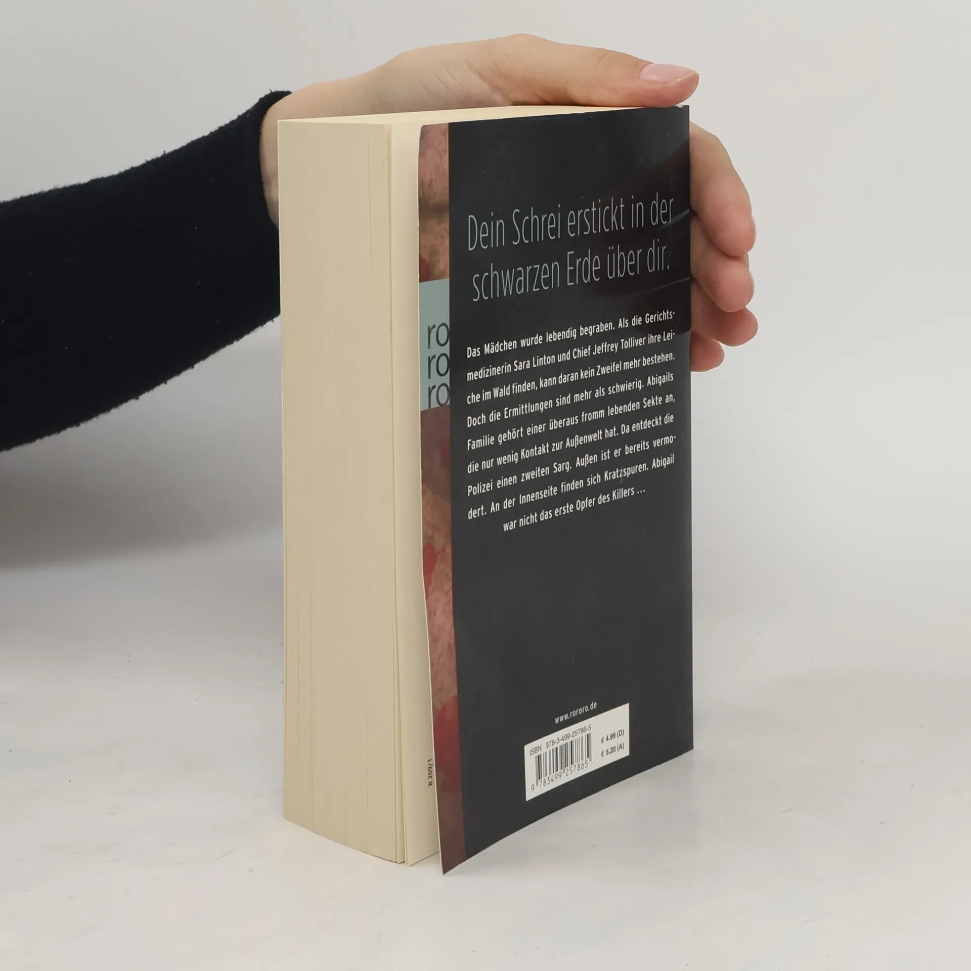 Dein Schrei erstickt in der schwarzen Erde über dir.Das Mädchen wurde lebendig begraben. Als die Gerichtsmedizinerin Sara Linton und Chief Jeffrey Tolliver ihre Leiche im Wald finden, kann daran kein Zweifel mehr bestehen. Doch die Ermittlungen sind mehr als schwierig. Abigails Familie gehört einer überaus fromm lebenden Sekte an, die nur wenig Kontakt zur Außenwelt hat. Da entdeckt die Polizei einen zweiten Sarg. Außen ist er bereits vermodert. An der Innenseite finden sich Kratzspuren. Abigail war nicht das erste Opfer des Killers ...