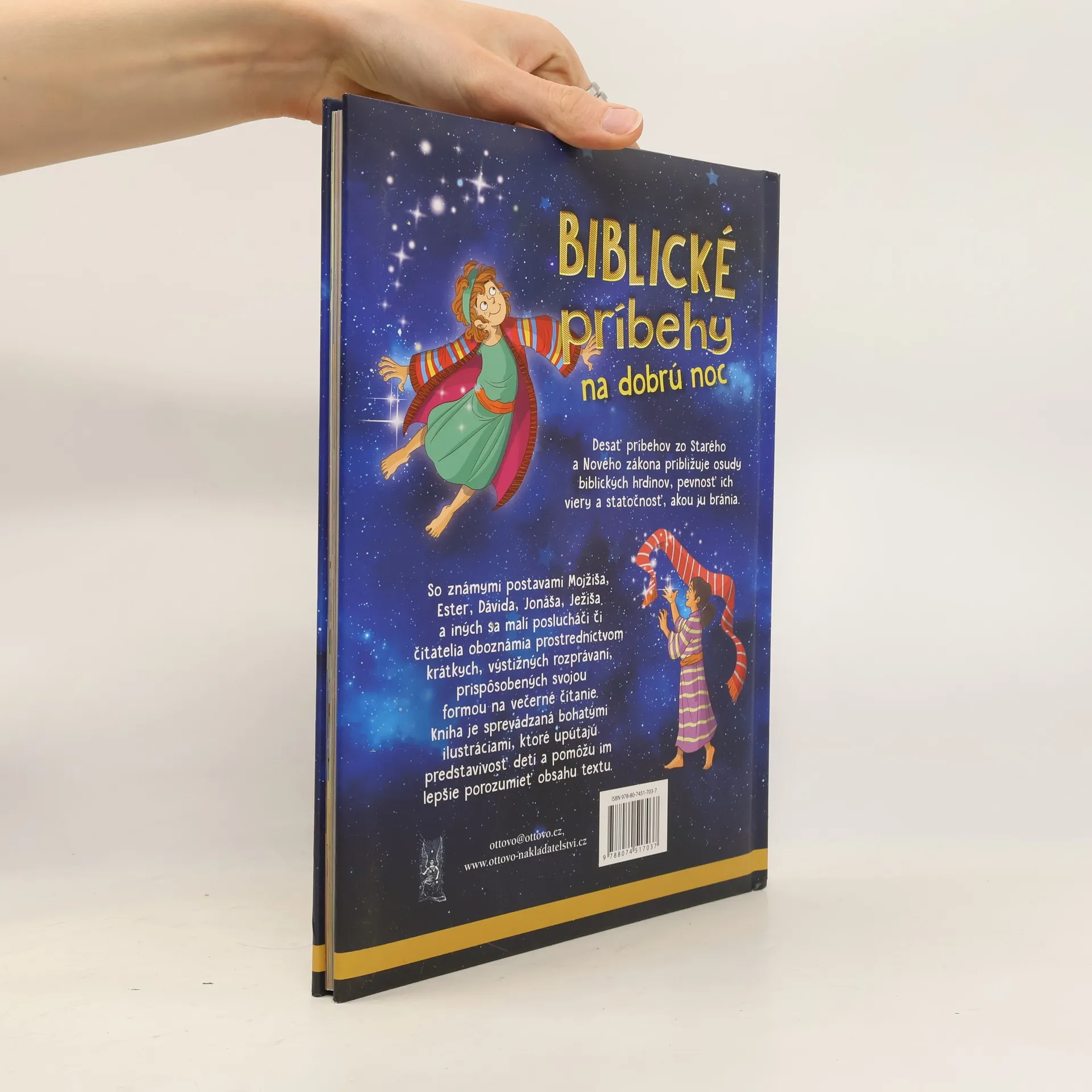 Čítaj mi pred spaním… prosím! S Biblickými príbehmi na dobrú noc môžu deti, prv než sa uložia na spánok, príjemne zakončiť deň.Vďaka textu, ktorý deti ľahko osloví, a ilustráciám, ktoré upútajú detskú predstavivosť, sa Biblické príbehy na dobrú noc stanú obľúbenou knižkou, na ktorú sa budú každý večer tešiť. Desať príbehov zo Starého i Nového zákona im priblížia osudy biblických hrdinov, pevnosť ich viery a statočnosť, akou ju bránia. Tieto rozprávania budú mať ešte radšej, ak si ich budú čítať s niekým, kto ich má rád.