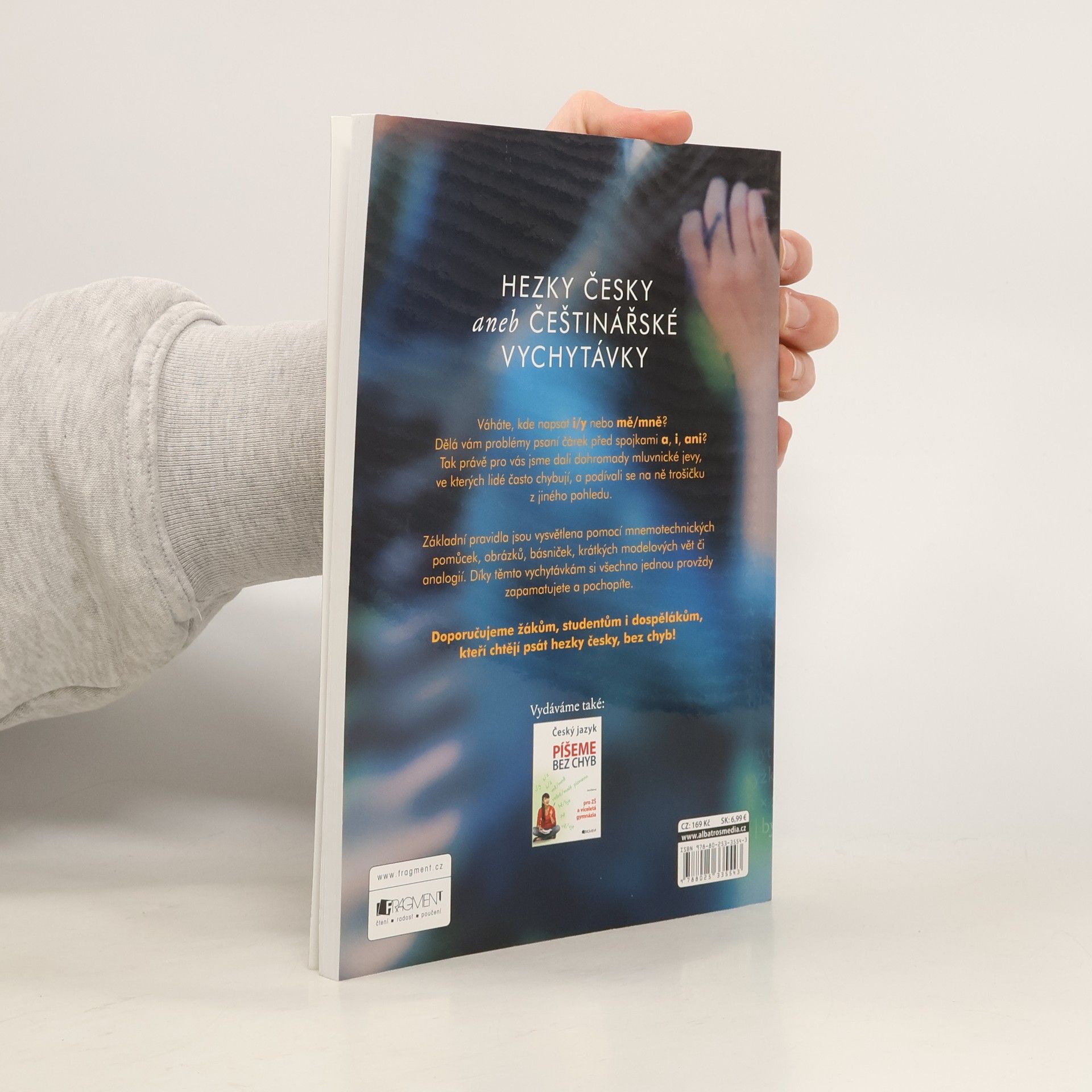 Doporučujeme žákům, studentům i dospělákům, kteří chtějí psát hezky česky, bez chyb! Váháte, kde napsat i/y nebo mě/mně? Dělá vám problémy psaní čárek před spojkami a, i, ani? Tak právě pro vás jsme dali dohromady mluvnické jevy, ve kterých lidé často chybují, a podívali se na ně trošičku z jiného pohledu. Základní pravidla jsou vysvětlena pomocí mnemotechnických pomůcek, obrázků, básniček, krátkých modelových vět či analogií. Díky těmto vychytávkám si všechno jednou provždy zapamatujete a pochopíte. Doporučujeme žákům, studentům i dospělákům, kteří chtějí psát hezky česky, bez chyb!