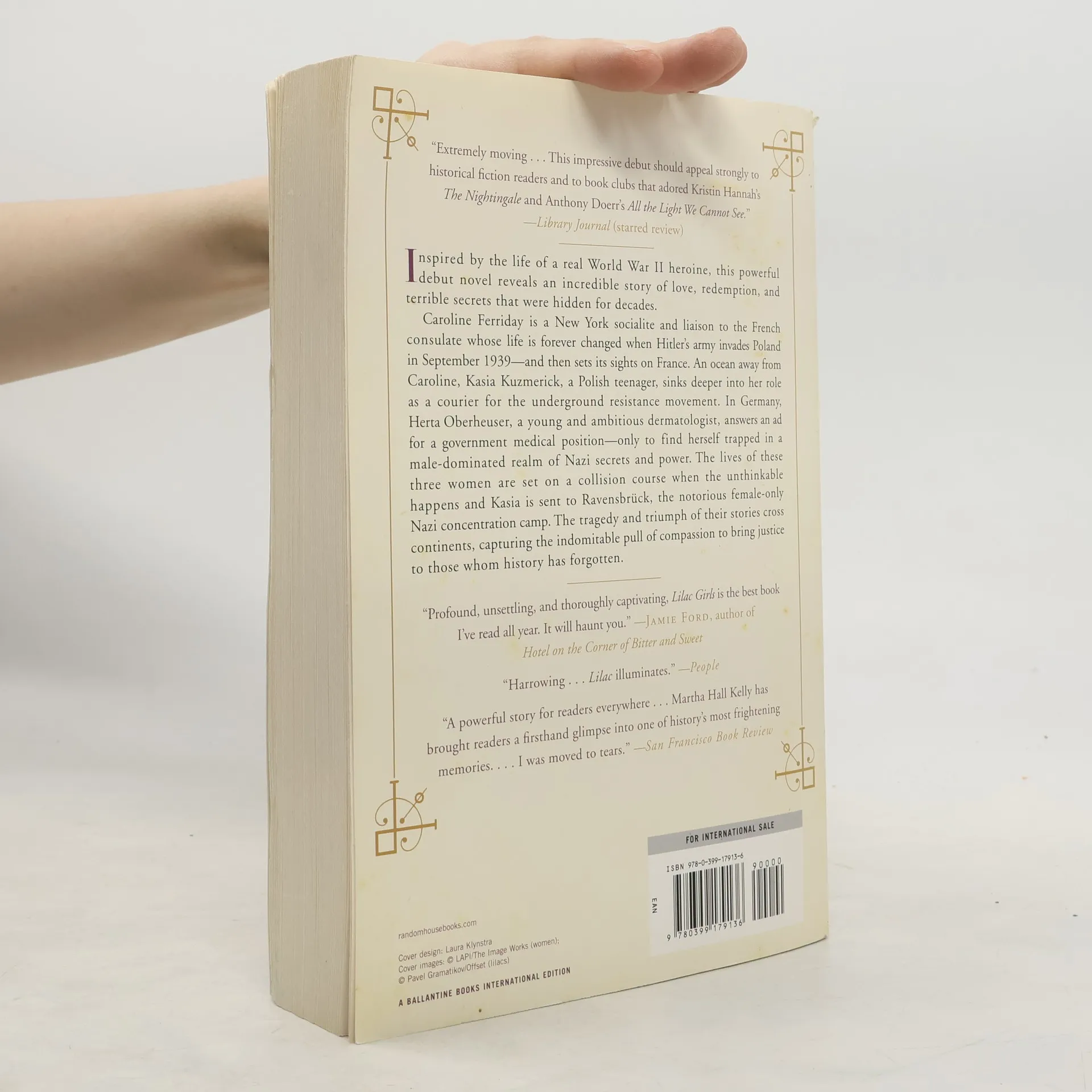 "On a September day in Manhattan in 1939, twenty-something Caroline Ferriday is consumed by her efforts to secure the perfect boutonniere for an important French diplomat and resisting the romantic advances of a married actor. Meanwhile across the Atlantic, Kasia Kuzmerick, a Polish Catholic teenager, is nervously anticipating the changes that are sure to come since Germany has declared war on Poland. As tensions rise abroad - and in her personal life - Caroline's interest in aiding the war effort in France grows and she eventually learns about the dire situation at the Ravensbruck all-female concentration camp. At the same time, Kasia's carefree youth is quickly slipping away, only to be replaced by a fervor for the Polish resistance movement. Through Ravensbruck - and the horrific atrocities taking place there told in part by an infamous German surgeon, Herta Oberheuser - the two women's lives will converge in unprecedented ways and a novel of redemption and hope emerges that is breathtaking in scope and depth. From New York to Paris, and Furstenberg to Lublin, Martha Hall Kelly captures the powerful pull of human compassion, strong enough to stretch across continents and capable of triumphing over the grim evils of war. This is a striking story of an unsung heroine and her resolute will to right what is wrong. Story Locale- New York City, WWII Europe, Paris, Poland"