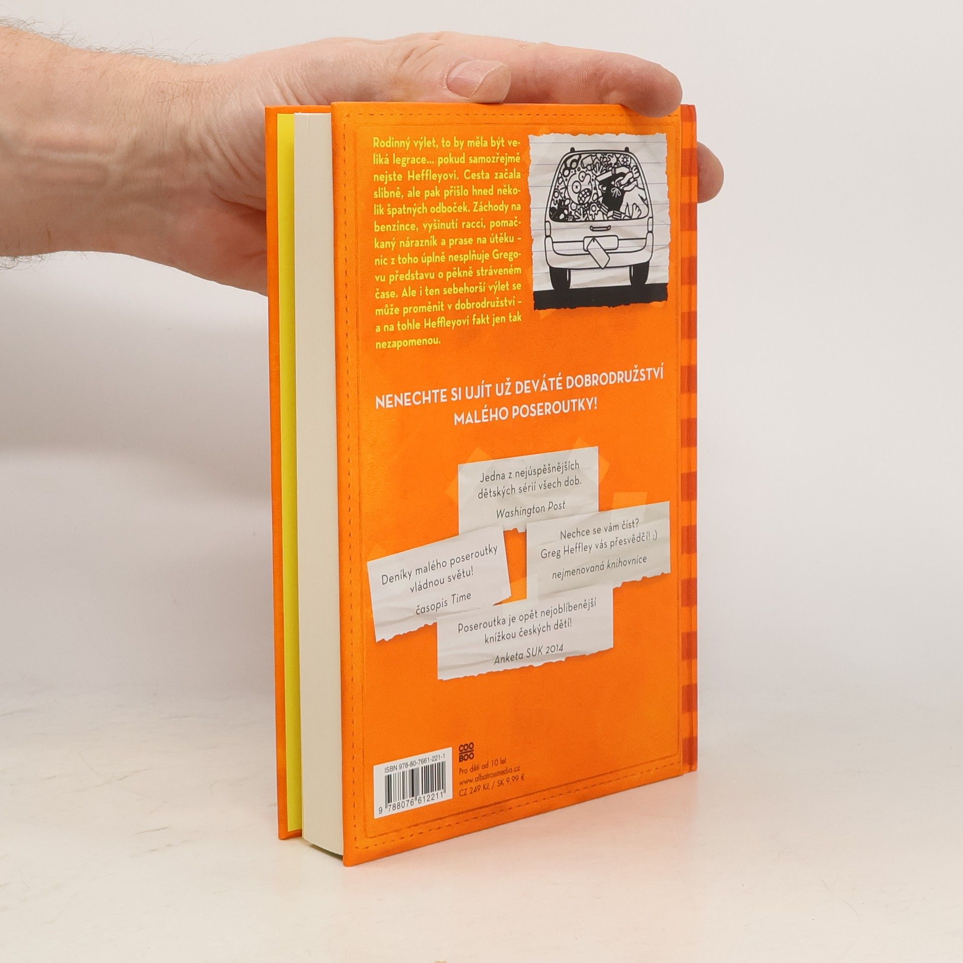 Malý poseroutka už podeváté! Co takhle rodinný výlet plný překvapení? Rodinný výlet, to by měla být veliká legrace… pokud samozřejmě nejste Heffleyovi. Cesta začala slibně, ale pak přišlo hned několik špatných odboček. Záchody na benzínce, vyšinutí racci, pomačkaný nárazník a prase na útěku – nic z toho úplně nesplňuje Gregovu představu o pěkně stráveném čase. Ale i ten sebehorší výlet se může proměnit v dobrodružství – a na tohle Heffleyovi fakt jen tak nezapomenou. Nenechte si ujít už deváté dobrodružství malého poseroutky!