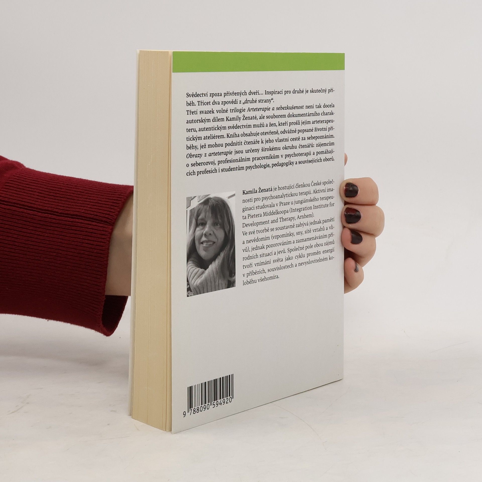 Svědectví zpoza přivřených dveří… Inspirací pro druhé je skutečný příběh. Třicet dva zpovědí z „druhé strany“. Třetí svazek volné trilogie Arteterapie a sebezkušenost není tak docela autorským dílem Kamily Ženaté, ale souborem dokumentárního charakteru, autentickým svědectvím mužů a žen, kteří prošli jejím arteterapeutickým ateliérem. Kniha obsahuje otevřeně, odvážně popsané životní příběhy, jež mohou podnítit čtenáře k jeho vlastní cestě za sebepoznáním. Obrazy z arteterapie jsou určeny širokému okruhu čtenářů: zájemcům o seberozvoj, profesionálním pracovníkům v psychoterapii a pomáhajících profesích i studentům psychologie, pedagogiky a souvisejících oborů.