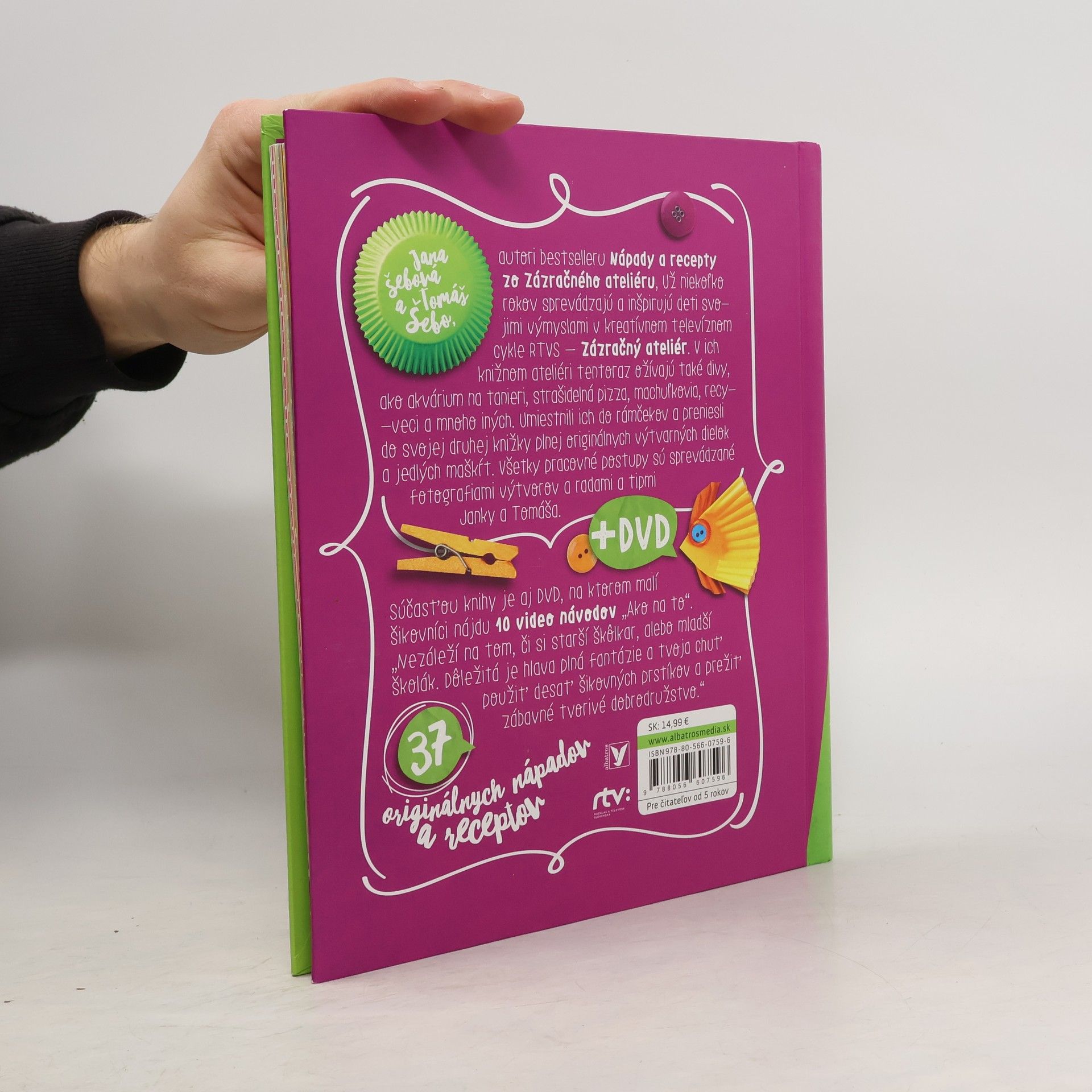 Janka a Tomáš zo Zázračného ateliéru sú tu opäť a s novými prekvapeniami! V ich knižnom ateliéri tentoraz ožívajú také divy, ako je akvárium na tanieri, strašidelná pizza, machuľkovia, recy-veci, uletené lievance či strašiak na zjedenie a mnoho iných. Samé super veci a niektoré sa dajú aj zjesť! Navyše ich môžete dať do rámčeka a hneď máte skvelý darček pre kamoša či kamošku.