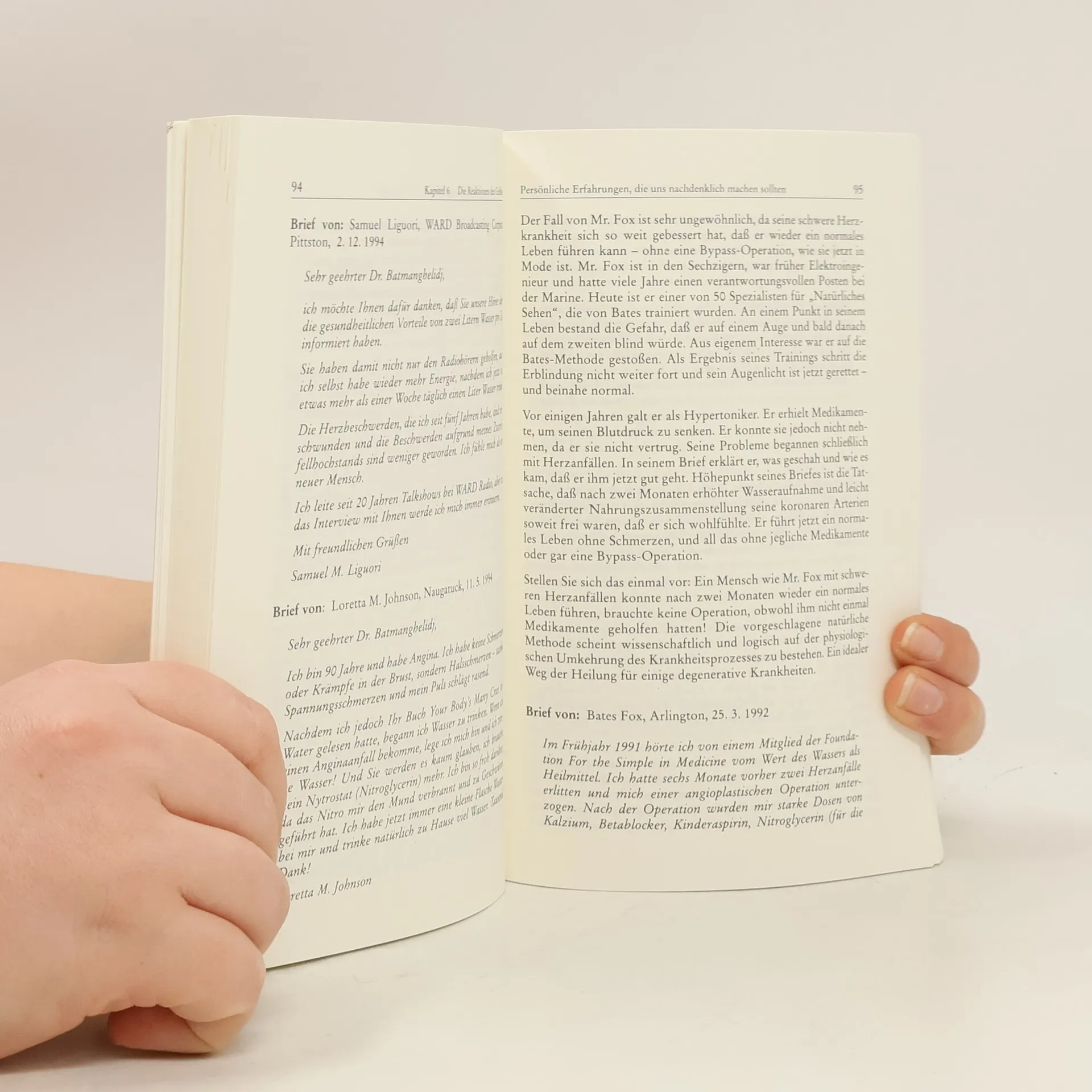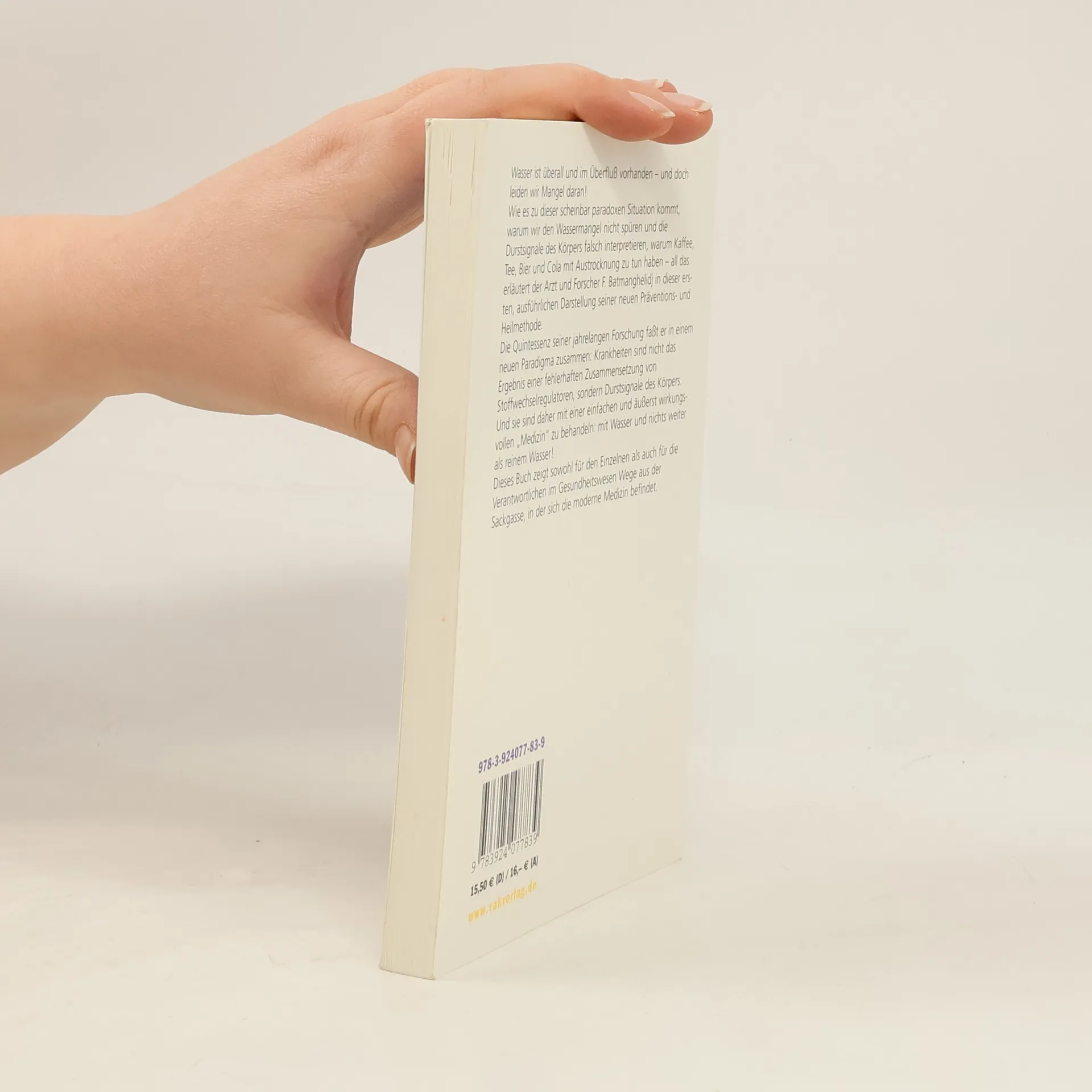 Wasser besitzt Heilkräfte, die wir für gewöhnlich unterschätzen. Ausführlich erläutert der Ende der 70er-Jahre im Iran inhaftierte Arzt, dem während seiner politischen Gefangenschaft nur Wasser als Heilmittel zur Verfügung stand, die medizinische Wirkung von Wassertrinken auf den Körper. Seine Forschungen, die er nach seiner Haftentlassung in den USA weiterführte, zeigen, dass sich schon durch reichliches Wassertrinken schmerzhafte Erkrankungen wie Allergien, Asthma, hoher Blutdruck und erhöhte Cholesterinwerte, Verdauungsbeschwerden oder Kopfschmerzen vermeiden lassen. Ein überzeugendes Buch, das umlernen hilft: Noch nie war Gesundheit so einfach!