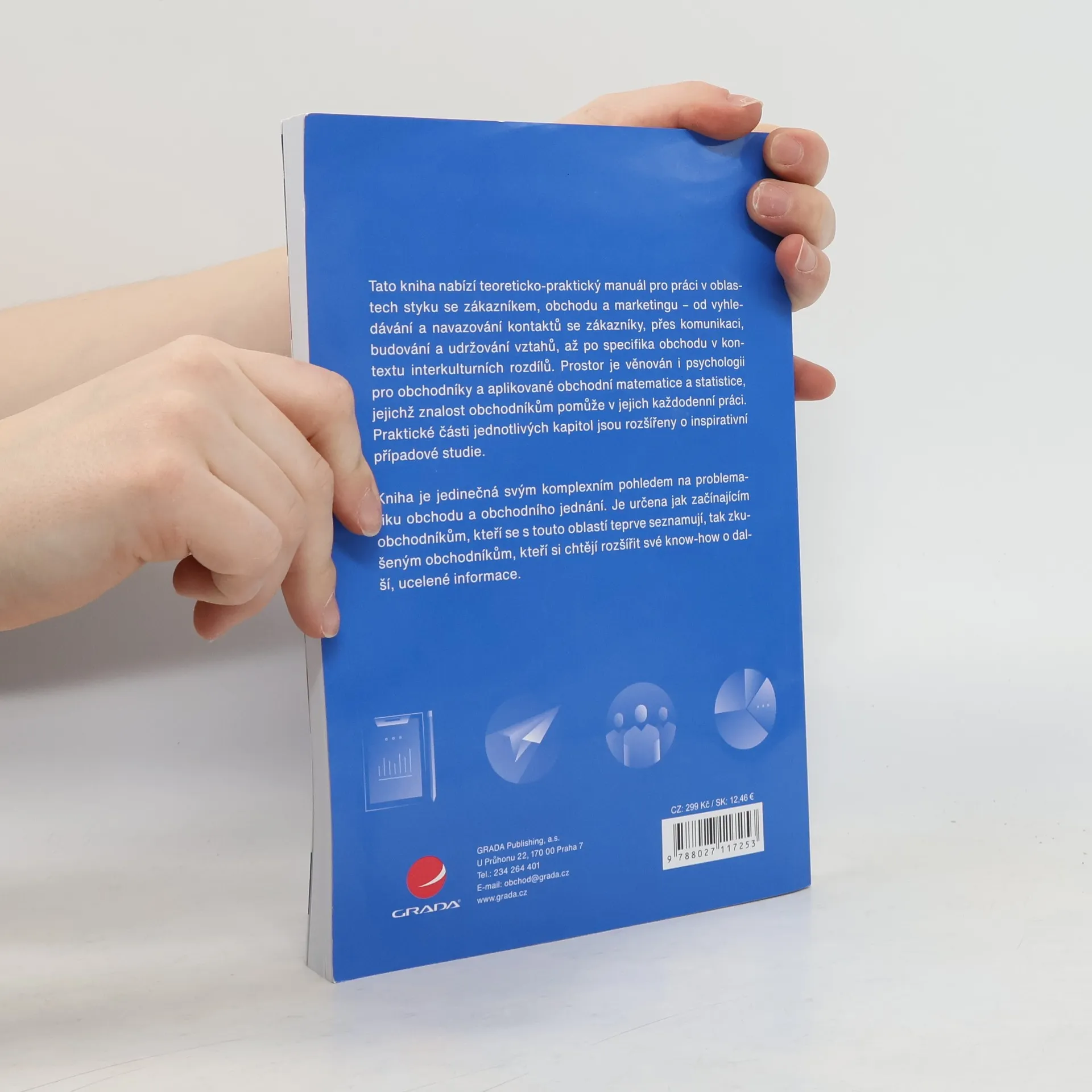 Tato kniha nabízí teoreticko-praktický manuál pro práci v oblastech styku se zákazníkem, obchodu a marketingu – od vyhledávání a navazování kontaktů se zákazníky, přes komunikaci, budování a udržování vztahů, až po specifika obchodu v kontextu interkulturních rozdílů. Prostor je věnován i psychologii pro obchodníky a aplikované obchodní matematice a statistice, jejichž znalost obchodníkům pomůže v jejich každodenní práci. Praktické části jednotlivých kapitol jsou rozšířeny o inspirativní případové studie. Kniha je jedinečná svým komplexním pohledem na problematiku obchodu a obchodního jednání. Je určena jak začínajícím obchodníkům, kteří se s touto oblastí teprve seznamují, tak zkušen