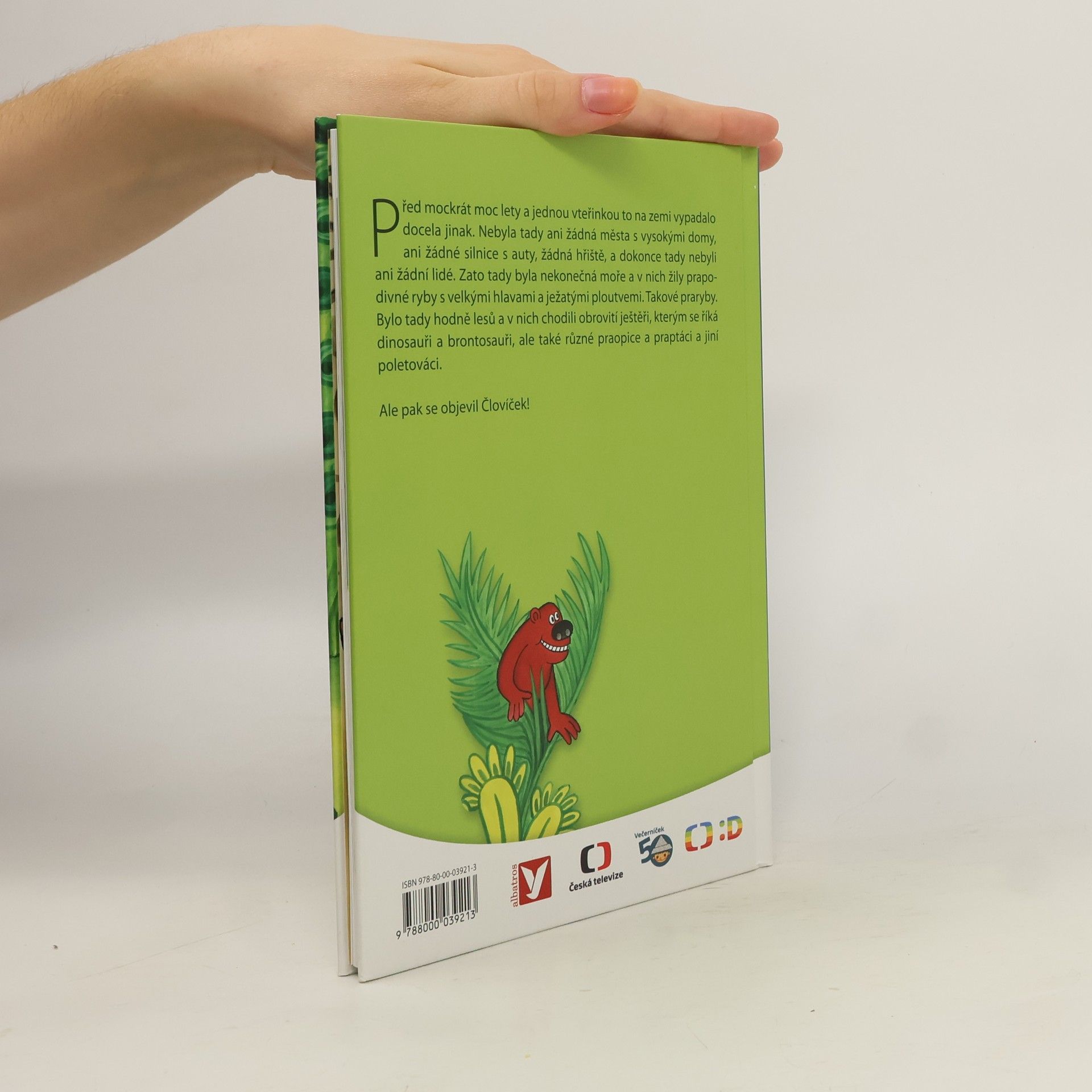 Před mockrát moc lety a jednou vteřinkou to na zemi vypadalo docela jinak. Nebyla tady ani žádná města s vysokými domy, ani žádné silnice s auty, žádná hřiště, a dokonce tady nebyli ani žádní lidé. Zato tady byla nekonečná moře a v nich žily prapodivné ryby s velkými hlavami a ježatými ploutvemi. Takové praryby. Bylo tady hodně lesů a v nich chodili obrovité ještěři, kterým se říká dinosauři brontosauři, ale také různé praopice a praptáci a jiní poletováci. Ale pak se objevil Človíček!