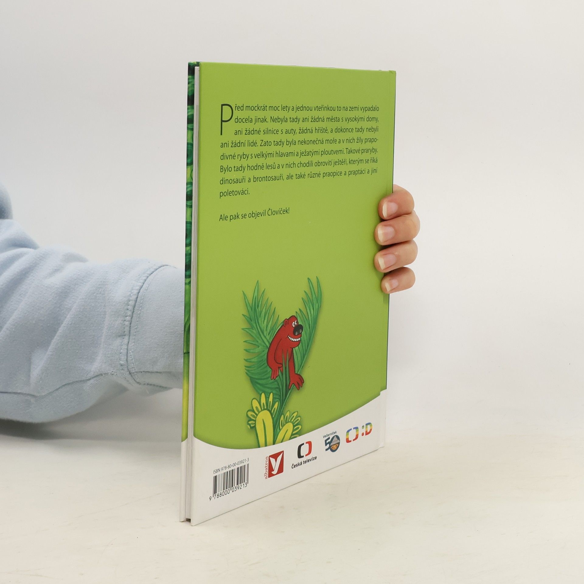 Před mockrát moc lety a jednou vteřinkou to na zemi vypadalo docela jinak. Nebyla tady ani žádná města s vysokými domy, ani žádné silnice s auty, žádná hřiště, a dokonce tady nebyli ani žádní lidé. Zato tady byla nekonečná moře a v nich žily prapodivné ryby s velkými hlavami a ježatými ploutvemi. Takové praryby. Bylo tady hodně lesů a v nich chodili obrovité ještěři, kterým se říká dinosauři brontosauři, ale také různé praopice a praptáci a jiní poletováci. Ale pak se objevil Človíček!