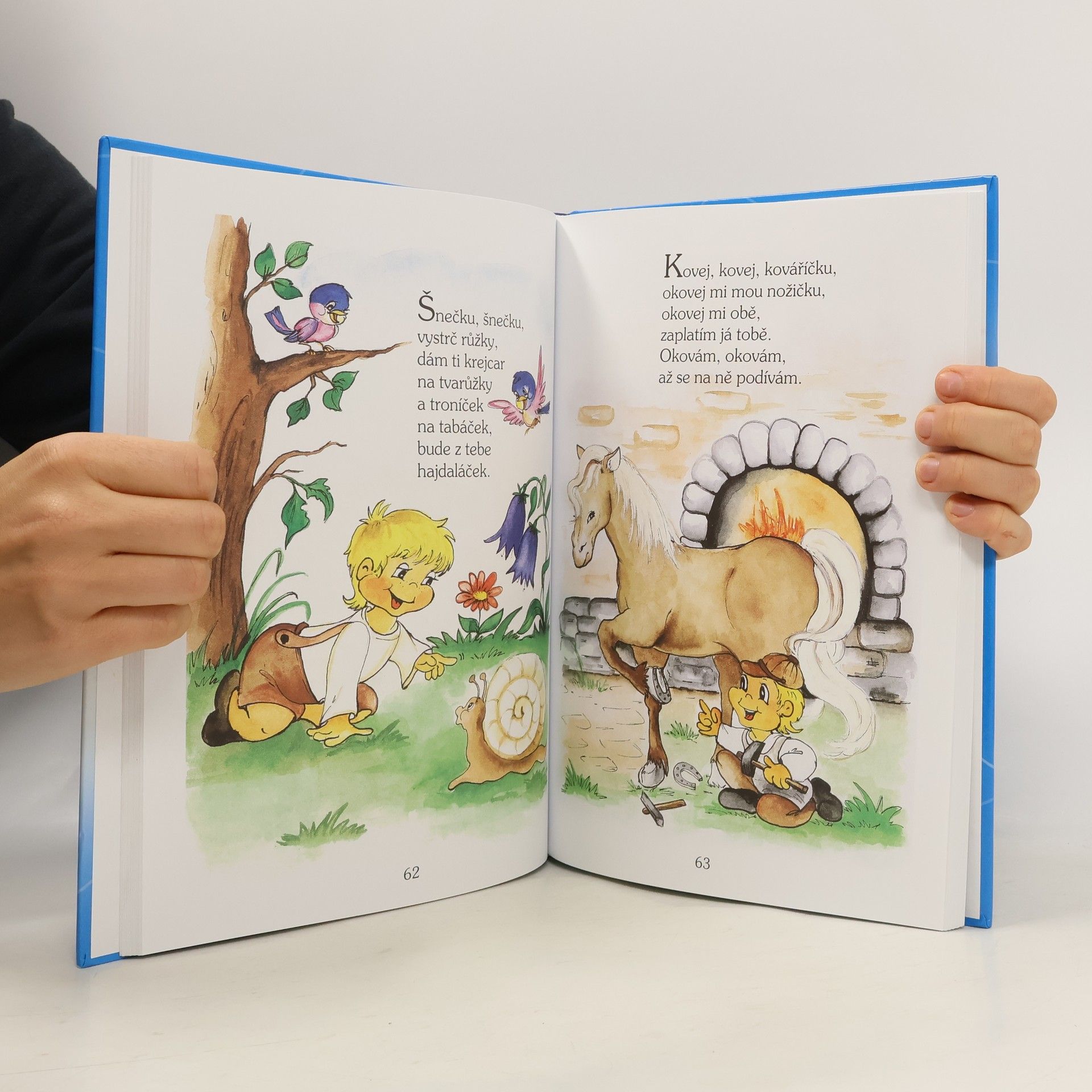 Zlatá brána otevřená; Šnečku, šnečku, vystrč růžky; Utíkej, Káčo, utíkej; Kovej, kovej, kovaříčku; Bubnujeme na buben… a další známá i pozapomenutá česká lidová říkadla, básničky, hry a rozpočítadla jsou doprovázena veselými obrázky Vladimíry Vopičkové. Knížka plná krátkých, lehce zapamatovatelných říkadel je určena našim nejmenším.