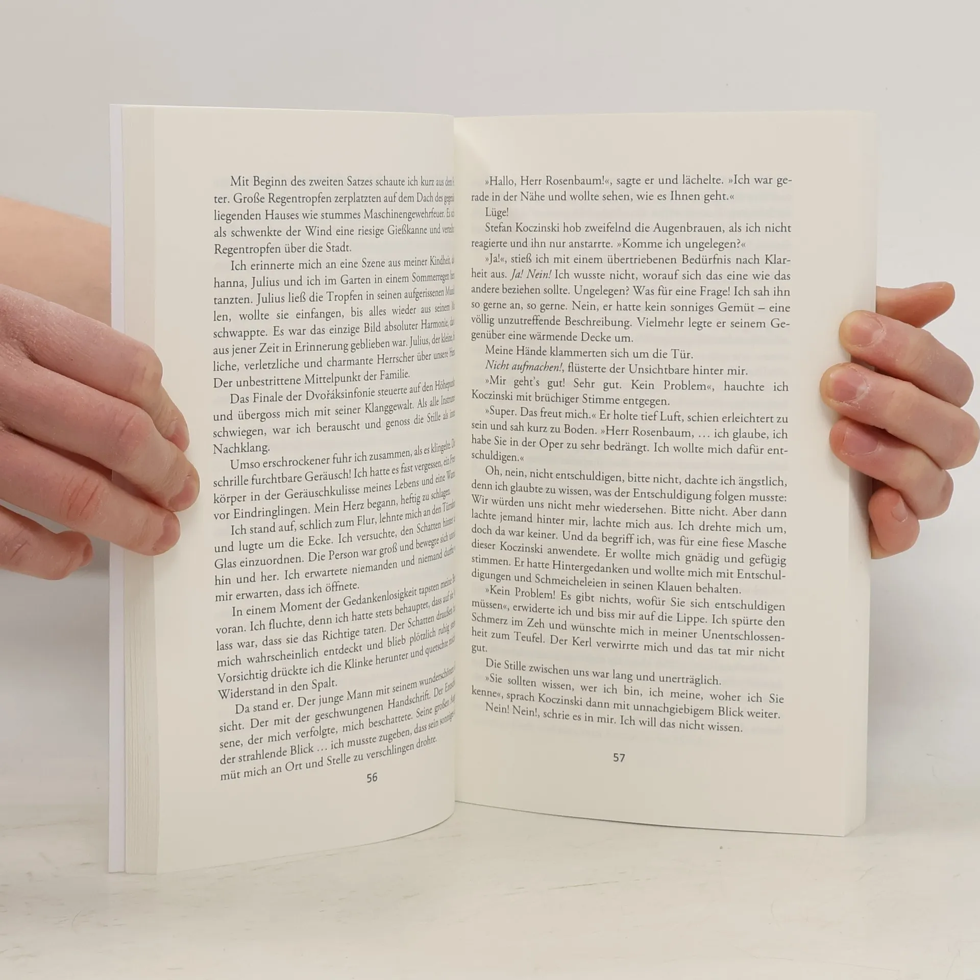 Nachdem er seinen Juwelierladen aufgegeben hat, verliert der alte Karl Rosnebaum den letzten Funken Lebensmut. Zeit seines Lebens spürt er die Schuld am Tod seiner Familie, die ihn seit seiner Kindheit in die Isolation getrieben hat. Zwischenmenschliche Beziehungen meidet Rosenbaum, so gut er kann. Große Gefühle lebt er nur in der Musik, in der Literatur und im Theater, im Schatten der Protagonisten aus. Er hofft, bangt, liebt und stirbt mit ihnen. Umso schutzloser fühlt sich Rosenbaum, als ihn während einer Opernvorstellung der junge Stefan Koczinski anspricht. Er behauptet, Rosenbaum zu kennen. Doch der alte Mann kann sich nicht erinnern, gerät unerklärlicherweise in Panik, fühlt sich bedroht, kann sich andererseits der Faszination des jungen Mannes nicht entziehen. Fortan stellt Koczinski ihm nach und lässt das vermeintlich stille Leben des alten Mannes aus den Fugen geraten, denn je heftiger Rosenbaum versucht, den Unbekannten abzuweisen und sich vor ihm zu schützen, desto größer wird der Wunsch, dem geheimnisvollen Interesse des jungen Mannes auf die Spur zu kommen. Doch der Preis ist hoch. Wird Rosenbaum bereit sein, den Schritt aufs glatte Eis zu wagen und sich schutzlos tiefen lebensechten Emotionen auszuliefern?