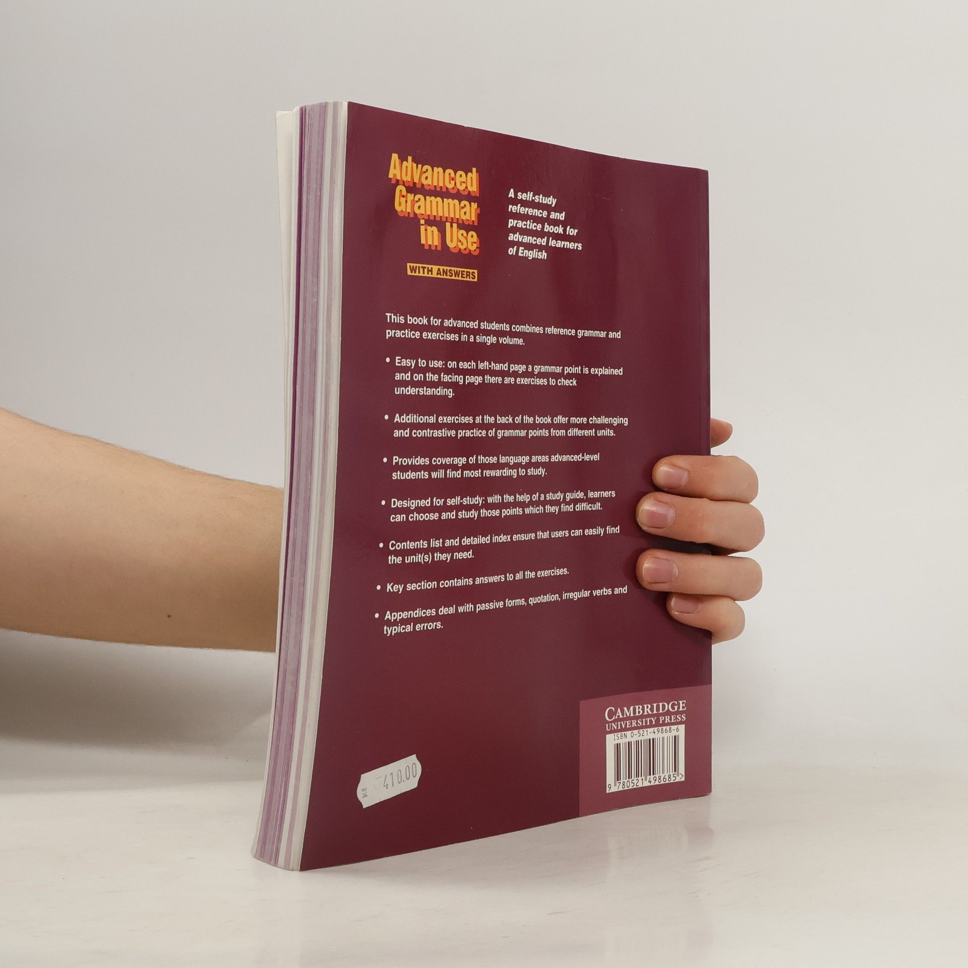 Advanced Grammar in Use contains 120 units of grammar explanation and practice exercises. It provides coverage of those language areas advanced-level students will find most rewarding to study. It retains the clarity of presentation of other books in the 'in Use' family. Two-page units present grammar explanation and examples, including typical student mistakes, on left-hand pages, and useful and varied practice on right-hand pages. Extra practice exercises at the back provide further challenging and contrastive practice of grammar points from different units. A study guide helps students find those areas most appropriate for their study. Grammar areas are cross-referenced throughout. There are useful appendices dealing with verb forms, and a glossary and all answers are given at the back.