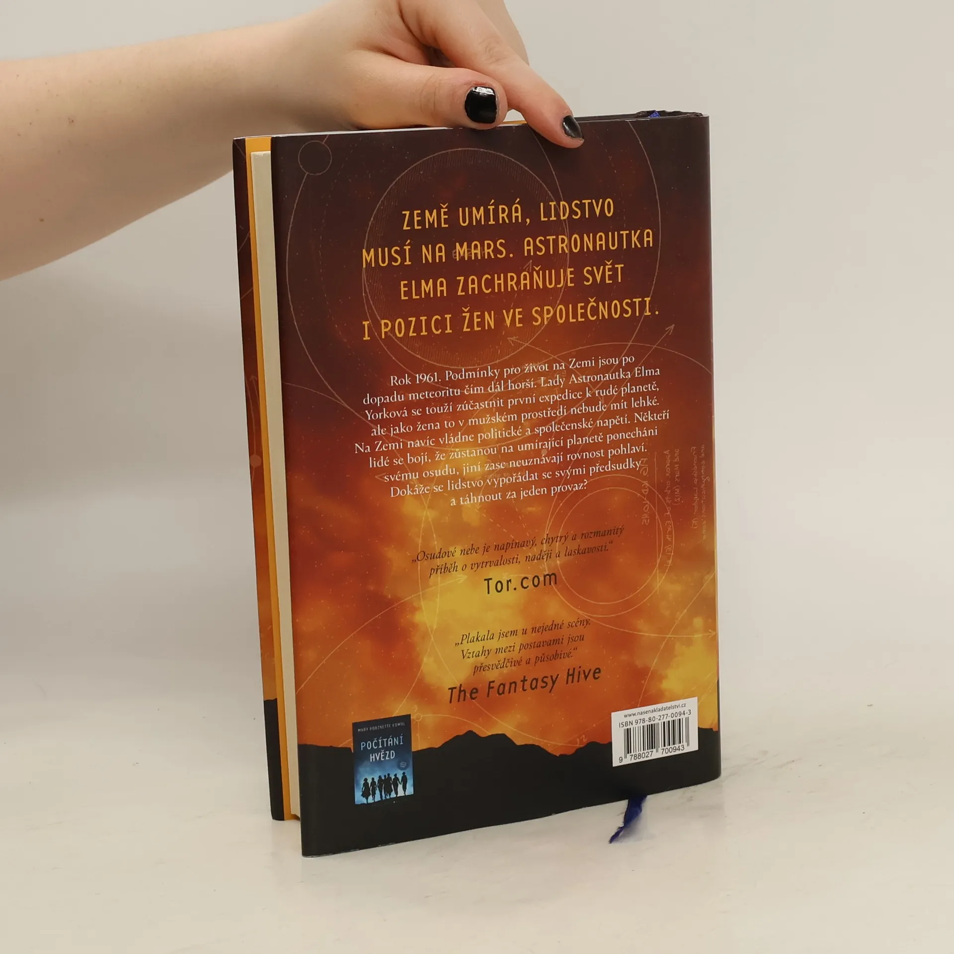 Velký skok pro lidstvo… Píše se rok 1961 a klima na Zemi se po dopadu meteoritu prudce zhoršuje. Kontinenty sužují větrné bouře a teplota začíná stoupat. Kolonie na Měsíci je již plně v provozu a lidé obracejí zrak k Marsu. Navzdory osobní oběti a politickému napětí se Lady astronautka Elma Yorková touží zúčastnit první expedice k rudé planetě. Jakožto žena v typicky mužském prostředí to ovšem nebude mít lehké. Napětí na Zemi navíc roste, jelikož někteří lidé mají obavy, že zůstanou na umírající planetě ponecháni svému osudu, a jiní naopak neuznávají rovnost všech. Lidstvo tak čelí nejen vnější hrozbě způsobené změnou klimatu, ale také vnitřním rozkolům plynoucím z rasové diskriminace. Dokáží se lidé vypořádat se svými předsudky a táhnout za jeden provaz? Přední současná americká autorka sci-fi a historické fantasy Mary Robinette Kowal získala za svoji trilogii o Lady astronautce řadu prestižních ocenění včetně ceny Hugo za nejlepší román za rok 2019 či cenu Nebula za nejlepší román za rok 2018.