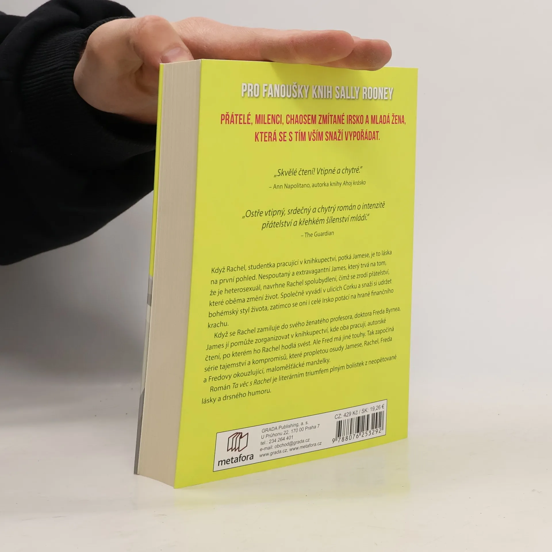 Když Rachel, studentka pracující v knihkupectví, potká Jamese, je to láska na první pohled. Nespoutaný a extravagantní James, který trvá na tom, že je heterosexuál, navrhne Rachel spolubydlení, čímž se zrodí přátelství, které oběma změní život. Společně vyvádí v ulicích Corku a snaží si udržet bohémský styl života, zatímco se oni i celé Irsko potácí na hraně finančního krachu. Když se Rachel zamiluje do svého ženatého profesora, doktora Freda Byrnea, James jí pomůže zorganizovat v knihkupectví, kde oba pracují, autorské čtení, po kterém ho Rachel hodlá svést. Ale Fred má jiné touhy. Tak započíná série tajemství a kompromisů, které propletou osudy Jamese, Rachel, Freda a Fredovy okouzlující, maloměšťácké manželky. Román Ta věc s Rachel je literárním triumfem plným bolístek z neopětované lásky a drsného humoru. Vychází v překladu Alžběty Komrskové.