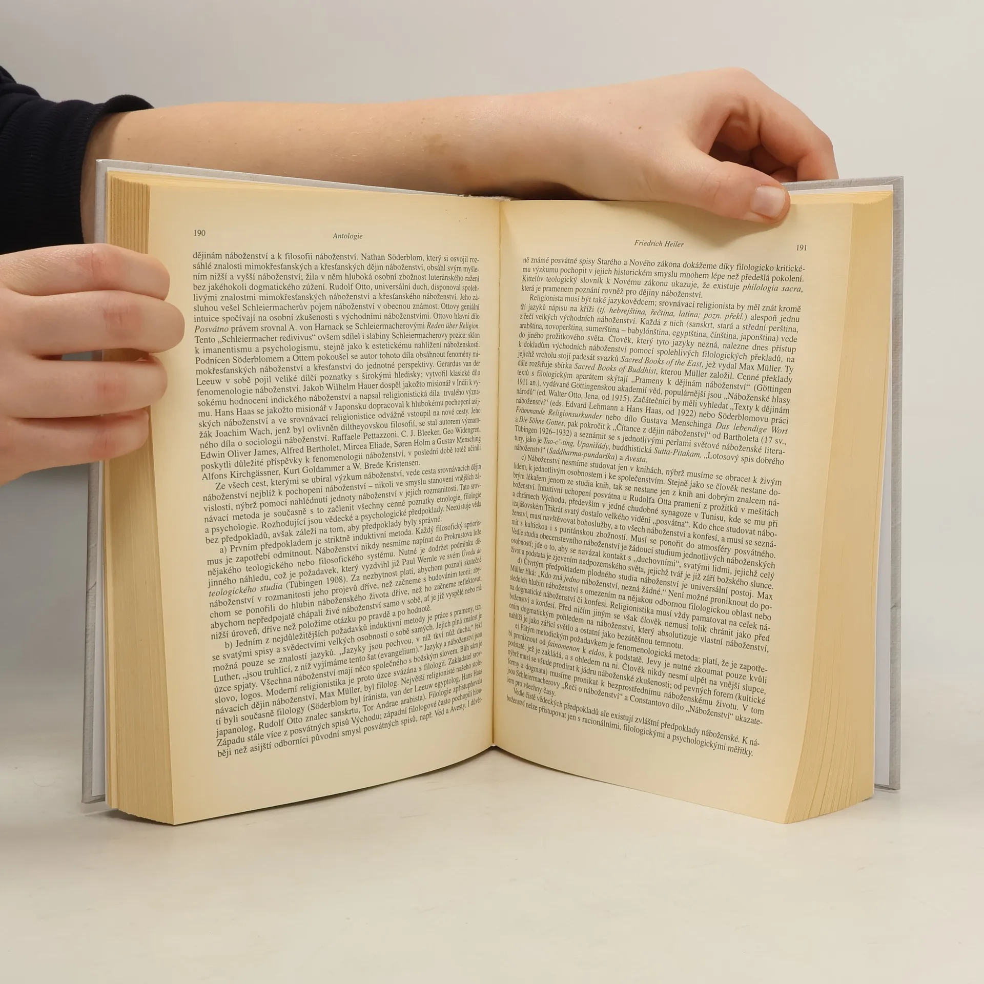 V první části publikace je zpracován nástin historie relativně „mladého“ samostatného oboru akademického studia, jehož předmětem jsou v nejširším slova smyslu jevy, procesy a skutečnosti shrnované pod obecný termín náboženství. Autoři definují religionistiku jako modernistickou disciplínu v kulturním kontextu určitého období, která je neoddělitelně spjata s myšlením evropské moderny, z níž čerpá své metody, postoje, hodnoty a perspektivy. Kniha se zabývá vztahem religionistiky a teologie, samostatná kapitola je věnována dějinám české religionistiky a současným problémům v religionistice. Druhá část obsahuje rozsáhlou antologii padesáti význačných osobností tohoto oboru. V alfabetickém pořadí je každý religionista uveden kurikulem vitae, následuje přesný výčet původní i přeložené publikační tvorby s odkazem na rok vydání. Velmi důležité jsou několikastránkové překlady z děl jednotlivých religionistů.