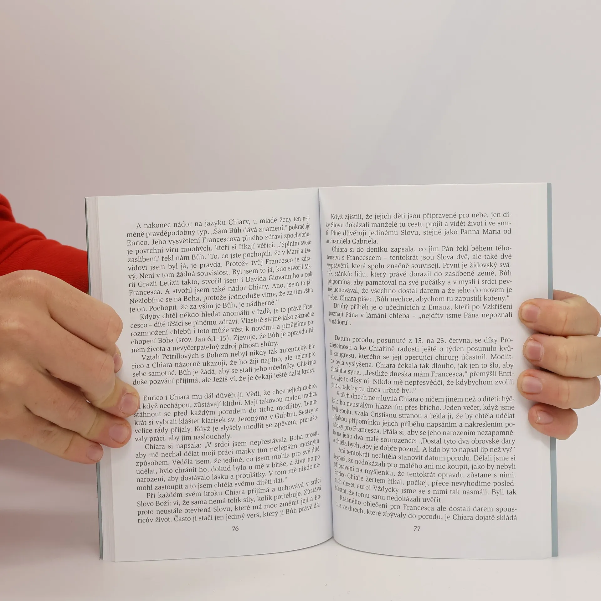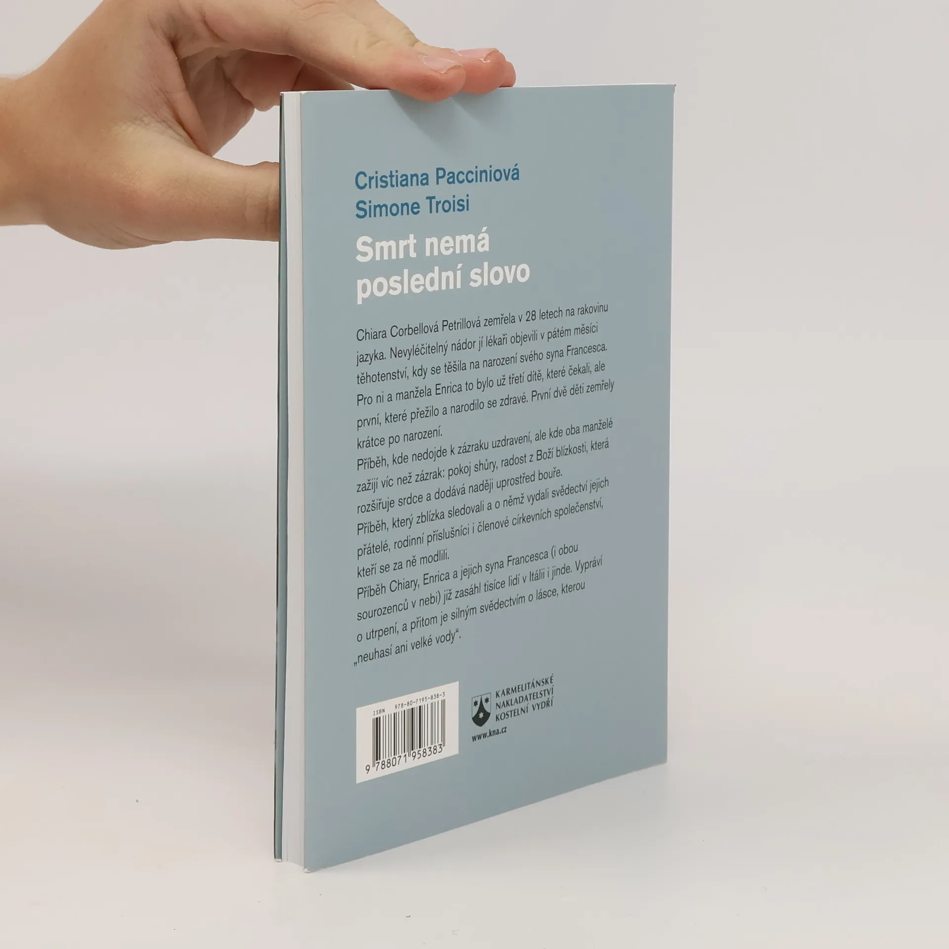 Chiara Corbellová Petrillová zemřela v 28 letech na rakovinu jazyka. Nevyléčitelný nádor jí lékaři objevili v pátém měsíci těhotenství, kdy se těšila na narození svého syna Francesca. Pro ni a manžela Enrica to bylo už třetí dítě, které čekali, ale první, které přežilo a narodilo se zdravé. První dvě děti zemřely krátce po narození. Příběh, kde nedojde k zázraku uzdravení, ale kde oba manželé zažijí víc než zázrak: pokoj shůry, radost z Boží blízkosti, která rozšiřuje srdce a dodává naději uprostřed bouře. Příběh, který zblízka sledovali a o němž vydali svědectví jejich přátelé, rodinní příslušníci i členové církevních společenství, kteří se za ně modlili. Příběh Chiary, Enrica a jejich syna Francesca (i obou sourozenců v nebi) již zasáhl tisíce lidí v Itálii i jinde. Vypráví o utrpení, a přitom je silným svědectvím o lásce, kterou „neuhasí ani velké vody“.