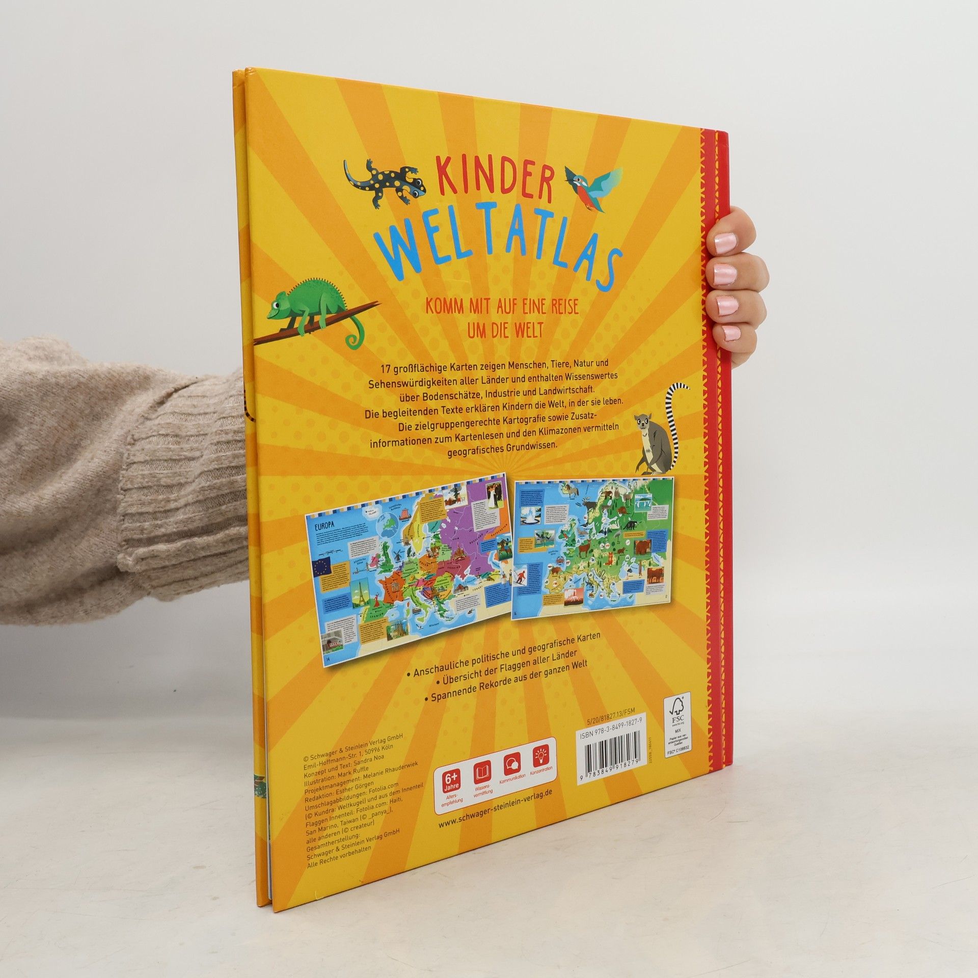 "17 großflächige Karten zeigen Menschen, Tiere, Natur und Sehenswürdigkeiten aller Länder und enthalten Wissenswertes über Bodenschätze, Industries und Landwirtschaft. Die begleitenden Texte erklären Kindern die Welt, in der sie leben. Die zielgruppengerechte Kartografie sowie Zusatz-inofrmationen zum Kartenlesen und den Klimazonen vermitteln geografisches Grundwissen. "--Back cover.