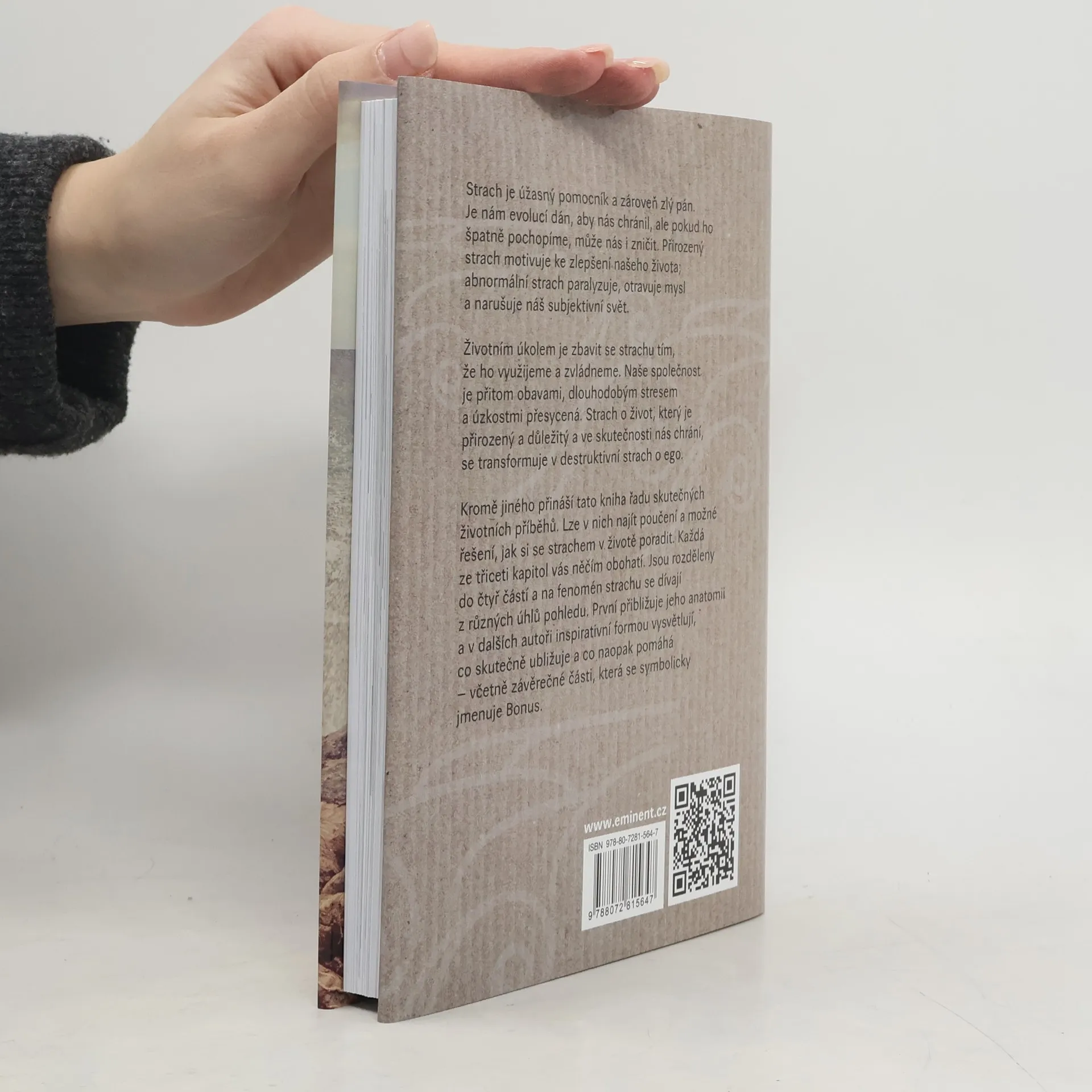 Strach je úžasný pomocník a zároveň zlý pán. Je nám evolucí dán, aby nás chránil, ale pokud ho špatně pochopíme, může nás i zničit. Přirozený strach motivuje ke zlepšení našeho života; abnormální strach paralyzuje, otravuje mysl a narušuje náš subjektivní svět. Životním úkolem je zbavit se strachu tím, že ho využijeme a zvládneme. Naše společnost je přitom obavami, dlouhodobým stresem a úzkostmi přesycená. Strach o život, který je přirozený a důležitý a ve skutečnosti nás chrání, se transformuje v destruktivní strach o ego. Kromě jiného přináší tato kniha řadu skutečných životních příběhů. Lze v nich najít poučení a možné řešení, jak si se strachem v životě poradit. Každá ze třiceti kapitol vás něčím obohatí. Jsou rozděleny do čtyř částí a na fenomén strachu se dívají z různých úhlů pohledu. První přibližuje jeho anatomii a v dalších autoři inspirativní formou vysvětlují, co skutečně ubližuje a co naopak pomáhá - včetně závěrečné části, která se symbolicky jmenuje Bonus.