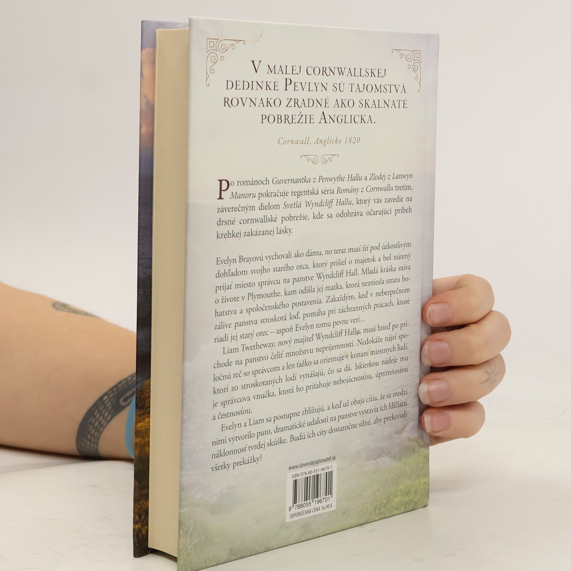 V malej cornwallskej dedinke Pevlyn sú tajomstvá rovnako zradné ako skalnaté pobrežie. Cornwall, Anglicko 1820. Po románoch Guvernantka z Penwythe Hallu a Zlodej z Lanwyn Manoru pokračuje regentská séria Romány z Cornwallu tretím, záverečným dielom, ktorý vás zavedie na drsné cornwallské pobrežie, kde sa odohráva očarujúci príbeh krehkej zakázanej lásky. Evelyn Brayovú vychovali ako dámu, no teraz žije pod dohľadom svojho starého otca, ktorý prišiel o majetok a stal sa správcom Wyndcliff Hallu. Mladá kráska sníva o živote v Plymouthe, kam odišla jej matka po strate bohatstva. Zakaždým, keď v nebezpečnom zálive stroskotá loď, pomáha pri záchranných prácach, ktoré riadi jej starý otec. Mladý šľachtic Liam Twetheway, nový majiteľ Wyndcliff Hallu, čelí množstvu nepríjemností. Nedokáže sa dohodnúť so správcom a ťažko sa orientuje v miestnych praktikách. Iskierkou nádeje mu je správcova vnučka, ktorá ho priťahuje svojou nebojácnosťou a úprimnosťou. Evelyn a Liam sa postupne zbližujú, no dramatické udalosti na panstve ich klíčiacu náklonnosť vystavia tvrdej skúške. Budú ich city dostatočne silné, aby prekonali všetky prekážky, ktoré im osud postavil do cesty?