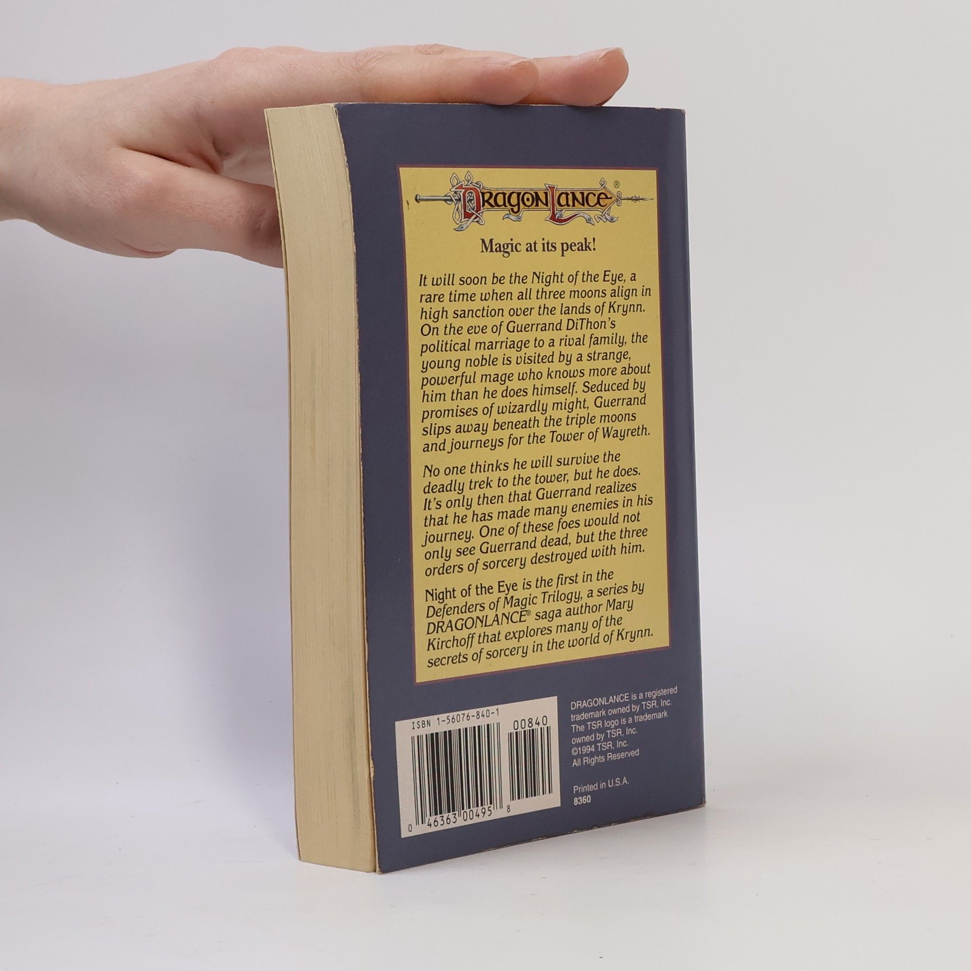 Magic at its peak!It will soon be the Night of the Eye, a rare time when all three moons align in high sanction over the lands of Krynn. On the eve of Guerrand DiThon's political marriage to a rival family, the young noble is visited by a strange, powerful mage who knows more about him than he does himself. Seduced by promises of wizardly might, Guerrand slips away beneath the triple moons and journeys for the Tower of Wayreth.No one thinks he will survive the deadly trek to the tower, but he does. It's only then that Guerrand realizes that he has made many enemies in his journey. One of these foes would not only see Guerrand dead, but the three orders of sorcery destroyed with him.