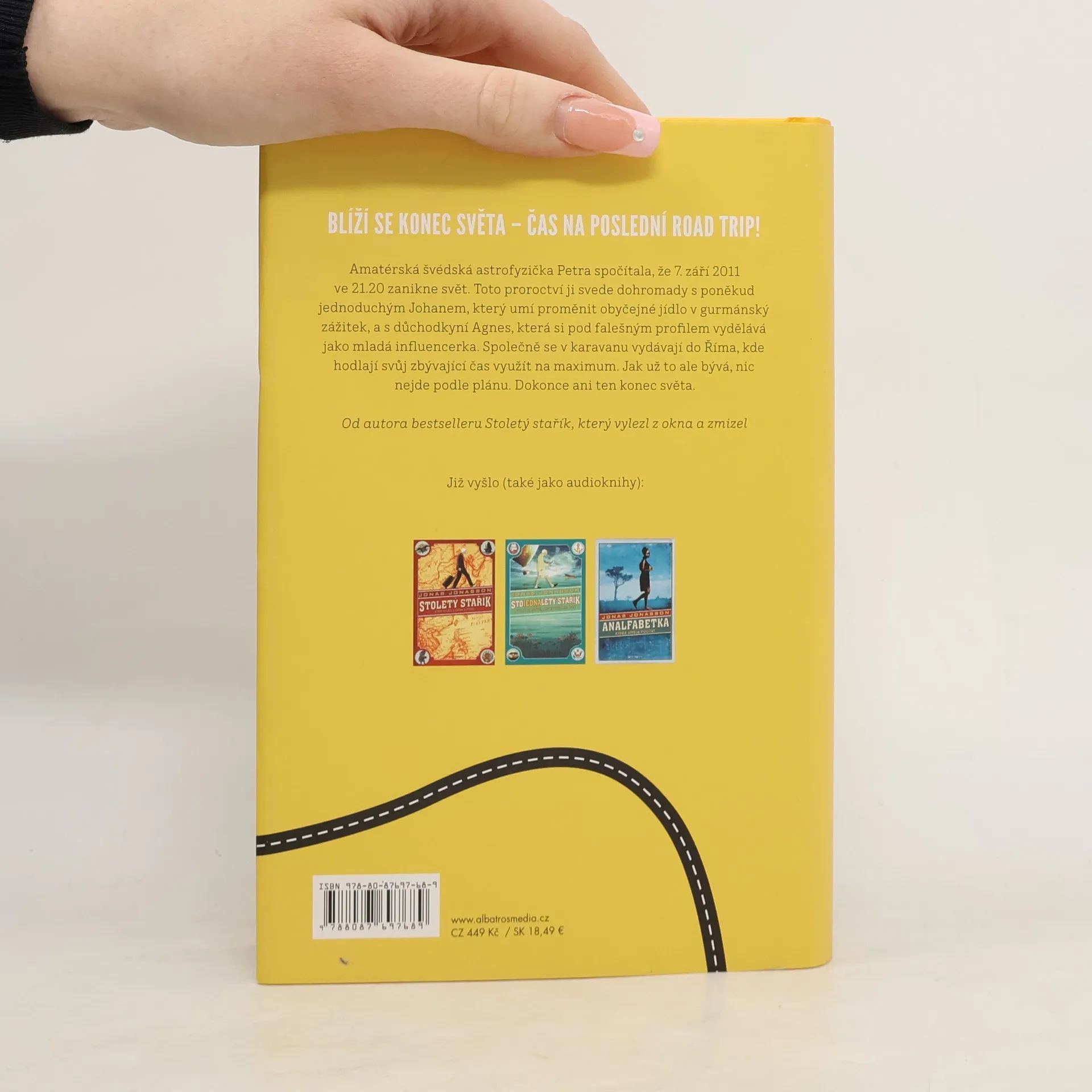 Blíží se konec světa – čas na poslední road trip! Od autora bestselleru Stoletý stařík. Amatérská švédská astrofyzička Petra spočítala, že 7. září 2011 ve 21.20 zanikne svět. Toto proroctví ji svede dohromady s poněkud jednoduchým Johanem, který umí proměnit obyčejné jídlo v gurmánský zážitek, a s důchodkyní Agnes, která si pod falešným profilem vydělává jako mladá influencerka. Společně se v karavanu vydávají do Říma, kde hodlají svůj zbývající čas využít na maximum. Jak už to ale bývá, nic nejde podle plánu. Dokonce ani ten konec světa.