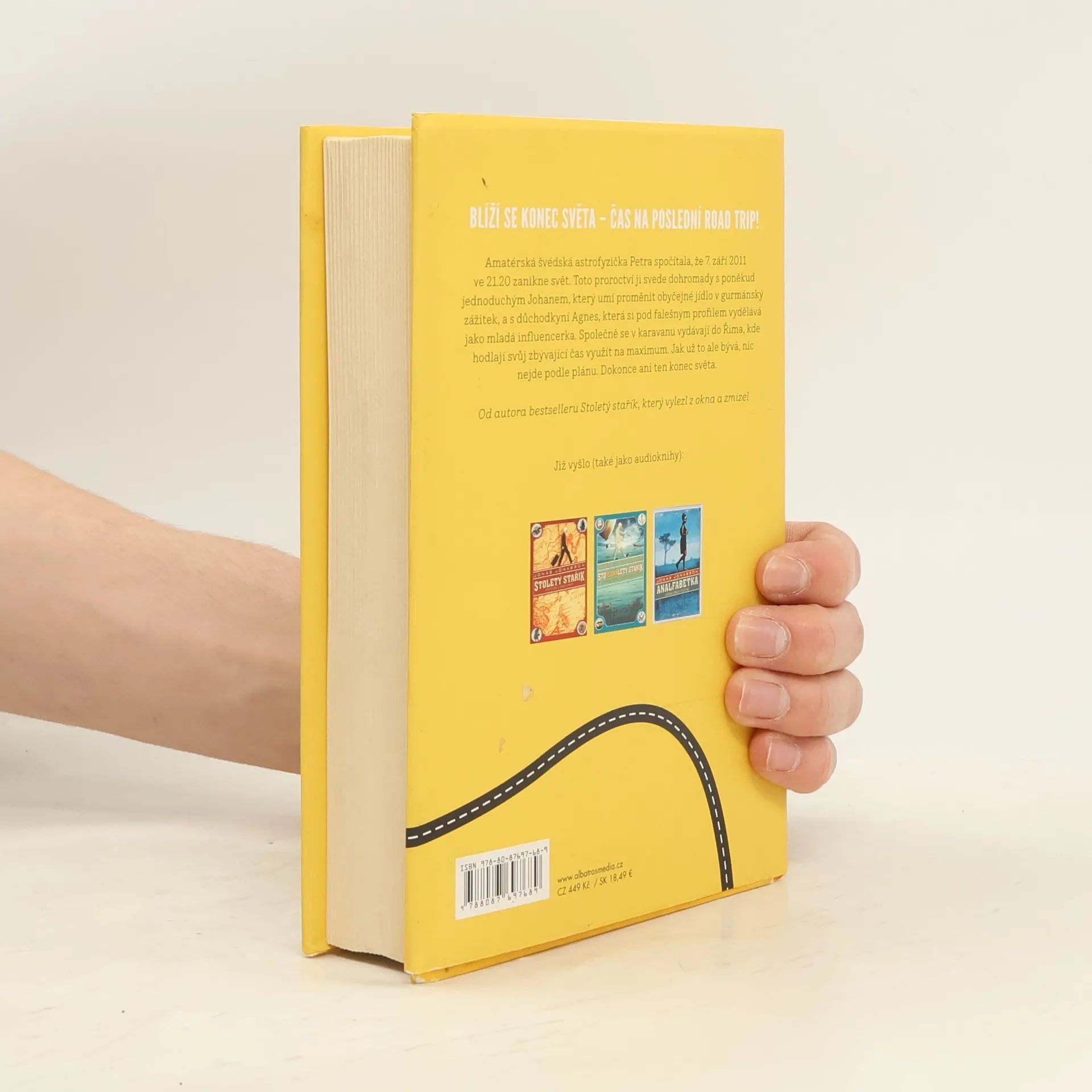 Blíží se konec světa – čas na poslední road trip! Od autora bestselleru Stoletý stařík. Amatérská švédská astrofyzička Petra spočítala, že 7. září 2011 ve 21.20 zanikne svět. Toto proroctví ji svede dohromady s poněkud jednoduchým Johanem, který umí proměnit obyčejné jídlo v gurmánský zážitek, a s důchodkyní Agnes, která si pod falešným profilem vydělává jako mladá influencerka. Společně se v karavanu vydávají do Říma, kde hodlají svůj zbývající čas využít na maximum. Jak už to ale bývá, nic nejde podle plánu. Dokonce ani ten konec světa.