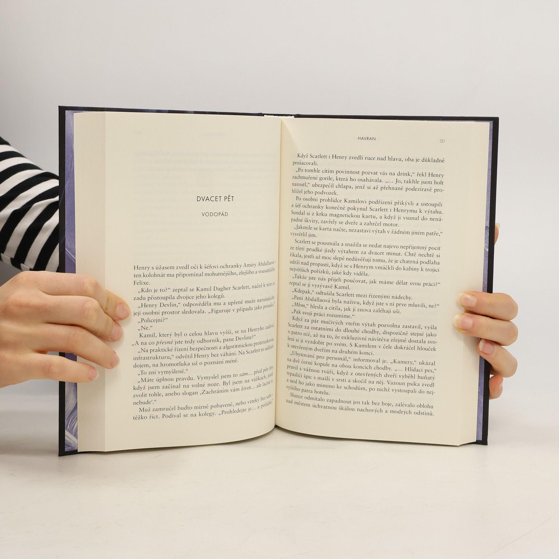 Žhavá, zábavná a neodložitelná novinka od autora bestselleru Hadrový panák. Ctižádostivá vyšetřovatelka. Okouzlující zabiják… a jejich dobrodružný hon na sériového vraha. Detektiv Scarlett Delaneyová se snaží dopadnout zločince přezdívaného Havran, jenž svým obětem uřízne hlavu, na obličeji zanechá pět škrábanců a odnese si šperk jako suvenýr, to vše za nejnemožnějších okolností. Je nepolapitelný a policie dlouho tápe, dokud Scarlett na jednom místě činu náhodou nenarazí na šarmantního Henryho, který tvrdí, že pracuje jako soukromé očko, a nabídne jí pomoc. Kamkoli se ale Henry vrtne, zůstávají po něm mrtvoly. A Havranova další akce je na spadnutí…