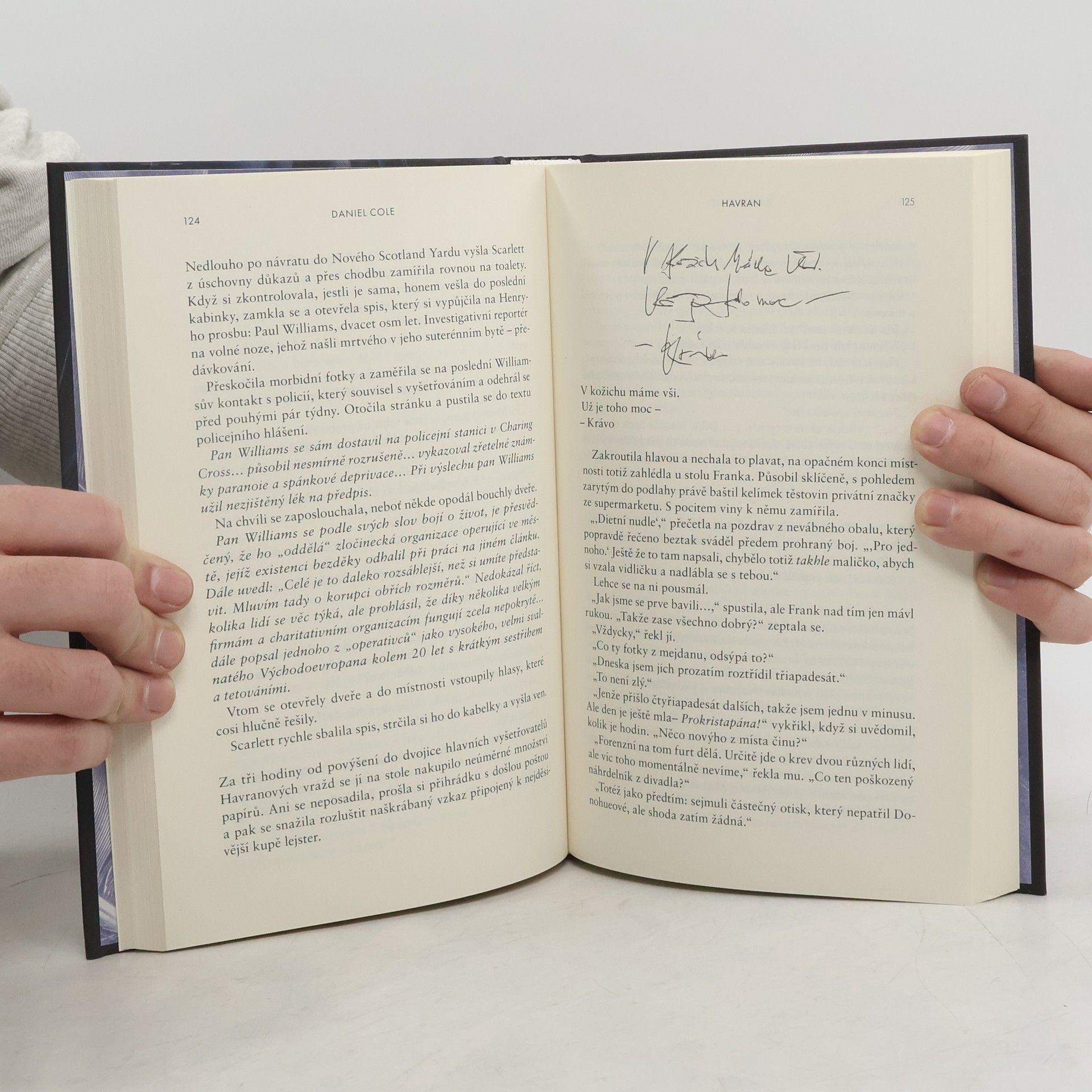 Žhavá, zábavná a neodložitelná novinka od autora bestselleru Hadrový panák. Ctižádostivá vyšetřovatelka. Okouzlující zabiják… a jejich dobrodružný hon na sériového vraha. Detektiv Scarlett Delaneyová se snaží dopadnout zločince přezdívaného Havran, jenž svým obětem uřízne hlavu, na obličeji zanechá pět škrábanců a odnese si šperk jako suvenýr, to vše za nejnemožnějších okolností. Je nepolapitelný a policie dlouho tápe, dokud Scarlett na jednom místě činu náhodou nenarazí na šarmantního Henryho, který tvrdí, že pracuje jako soukromé očko, a nabídne jí pomoc. Kamkoli se ale Henry vrtne, zůstávají po něm mrtvoly. A Havranova další akce je na spadnutí…