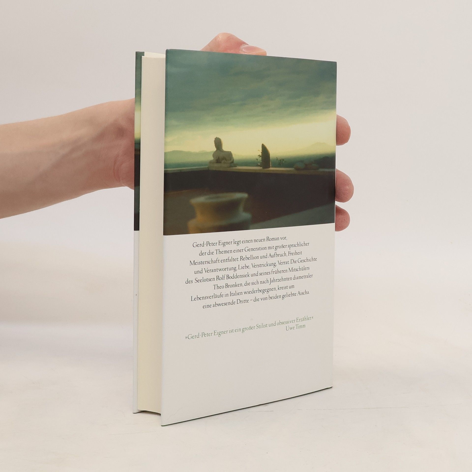 Ein großer Roman über das späte Wiedersehen zweier Männer, Rolf Boddensiek und Theo Bronken, die durch ihre Liebe zu Aischa verbunden sind. Gerd-Peter Eigner entfaltet mit sprachlicher Meisterschaft Themen wie Rebellion, Freiheit und Verantwortung und erzählt von den Träumen und Enttäuschungen der beiden Protagonisten.