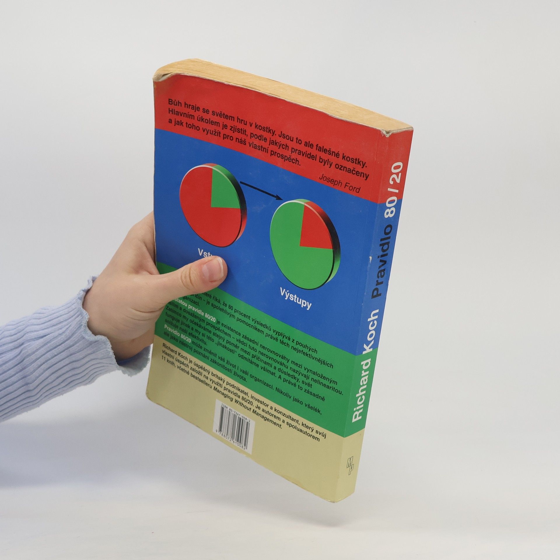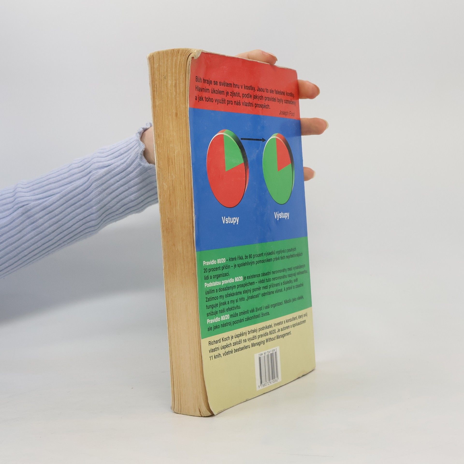 Kontrolujte svůj život, nedovolte, aby okolnosti kontrolovaly vás! Pravidlo 80/20 uvádí, že existuje vnitřně daná nerovnováha mezi příčinami a výsledky, vstupy a výstupy, úsilím a odměnou – 80 procent výstupů je výsledkem 20 procent vstupů a 80 procent výsledků vzniká z 20 procent příčin. V podnikání byla platnost pravidla 80/20 již potvrzena na mnoha příkladech - 20 procent výrobků, které organizace vyrábí, jí přináší 80 procent zisku, 20 procent zákazníků vytváří 80 procent tržeb organizace a 20 procent výrobků a zákazníků také obvykle vytváří 80 procent jejího zisku. Pravidlo 80/20 je první knihou, která ukazuje, jak pravidlo systematicky používat nejen v práci, ale i v osobním životě. Na široké škále příkladů z byznysu, osobního, společenského i politického života ukazuje, jak svět opravdu funguje: 20 procent recidivistů má na svědomí 80 procent trestných činů, 20 procent řidičů způsobuje 80 procent dopravních nehod a 20 procent těch, kteří uzavřou sňatek, se podílí na 80 procentech rozvodové statistiky.
