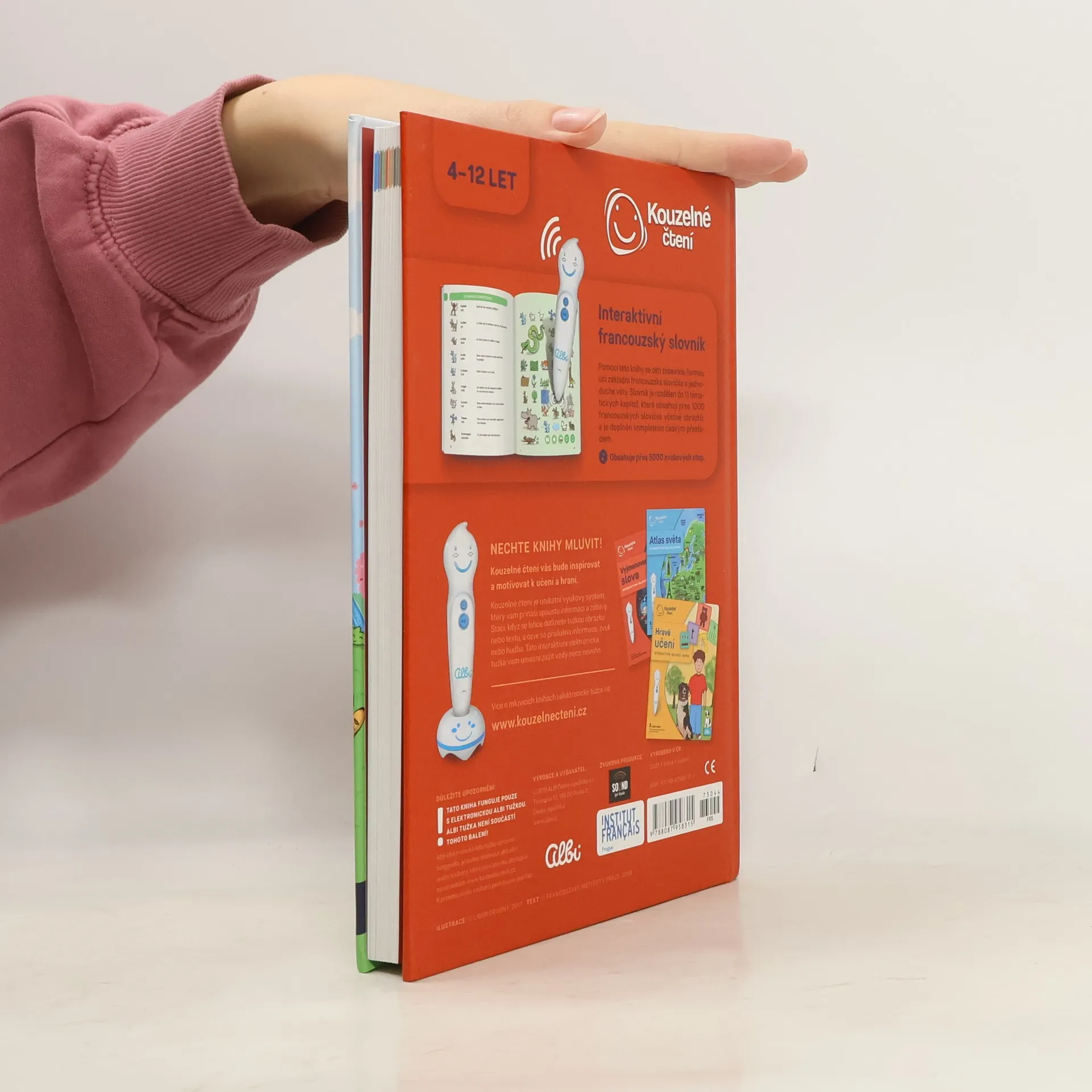 Pomocí této knihy se děti zábavnou formou učí základní francouzská slovíčka a jednoduché věty. Slovník je rozdělen do 11 tématických kapitol, které obsahují přes 1000 francouzských slovíček včetně obrázků, a je doplněn kompletním českým překladem. Elektronická Albi tužka není součástí balení. Prodává se zvlášť.