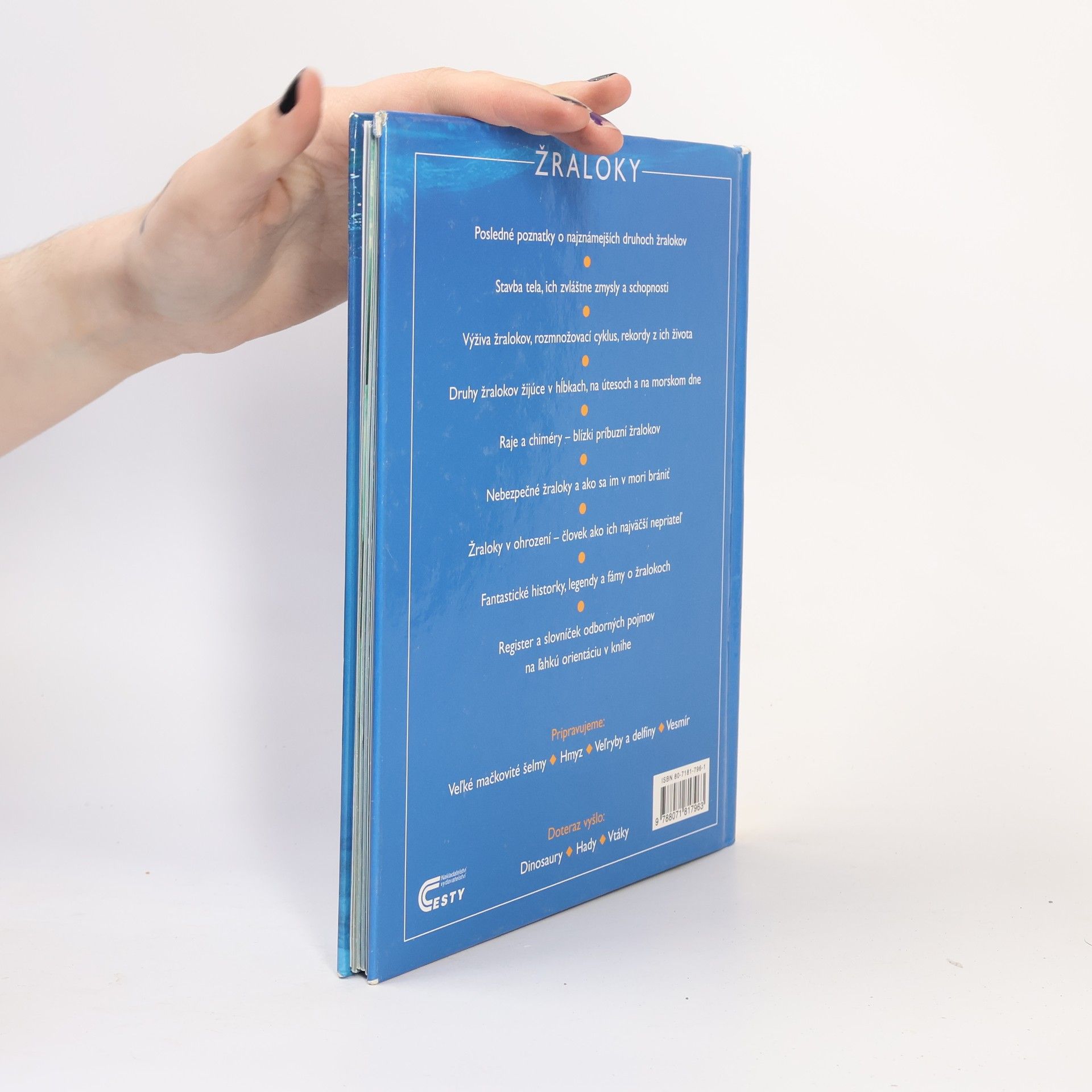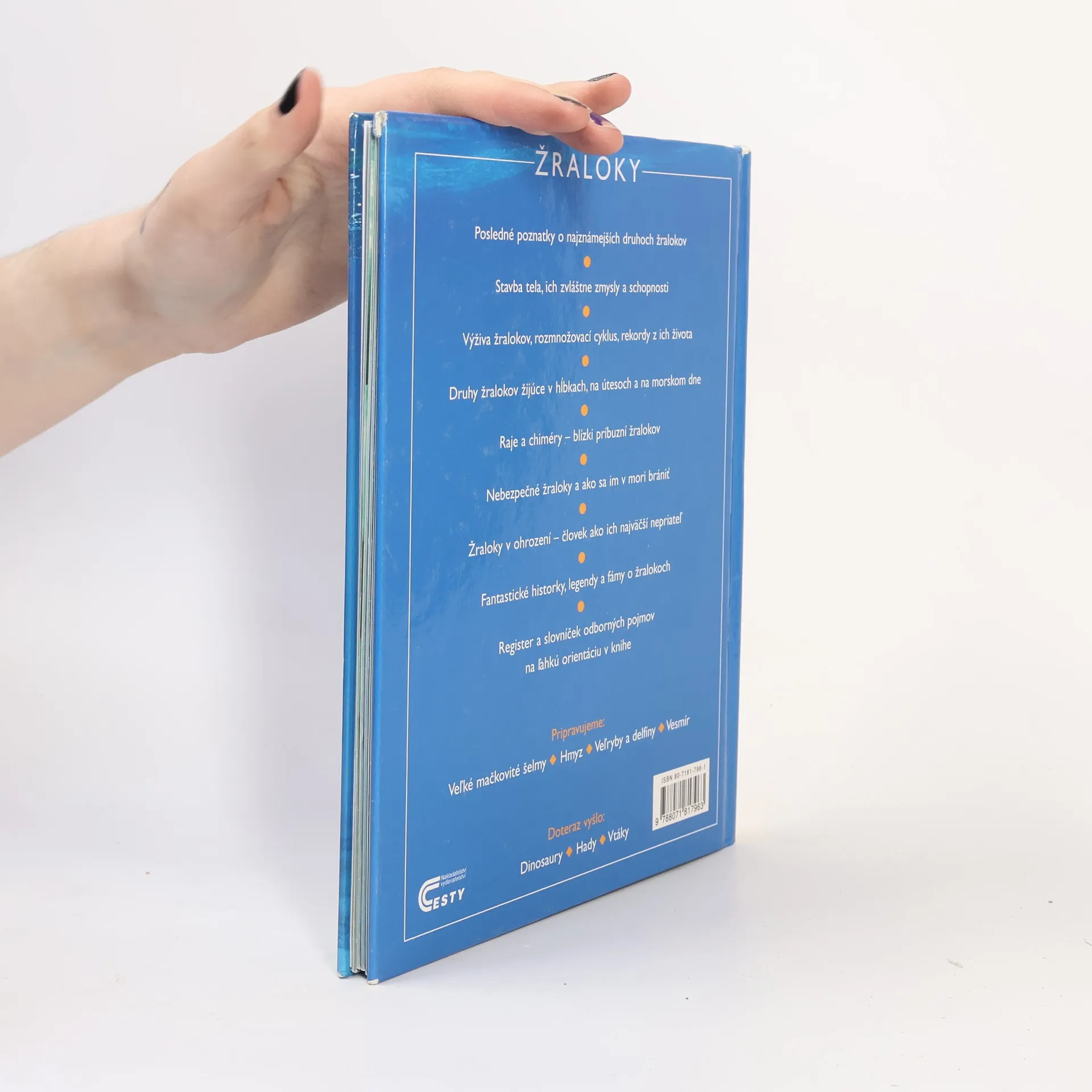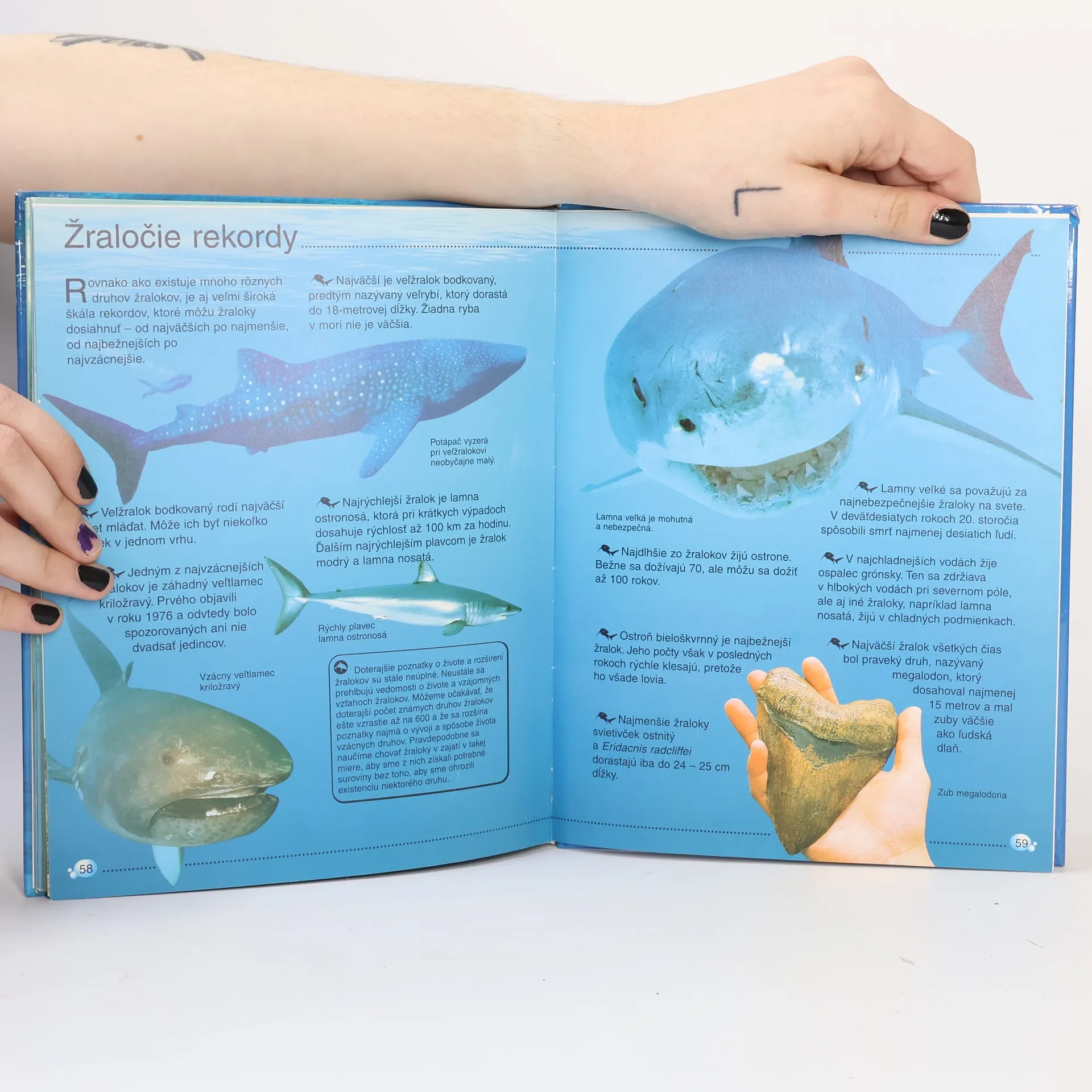 Poznatky o najznámejších druhoch, stavbe tela, ich zvláštne zmysly. História žralokov a ich rozoznávanie nájdete v knihe Žraloky.