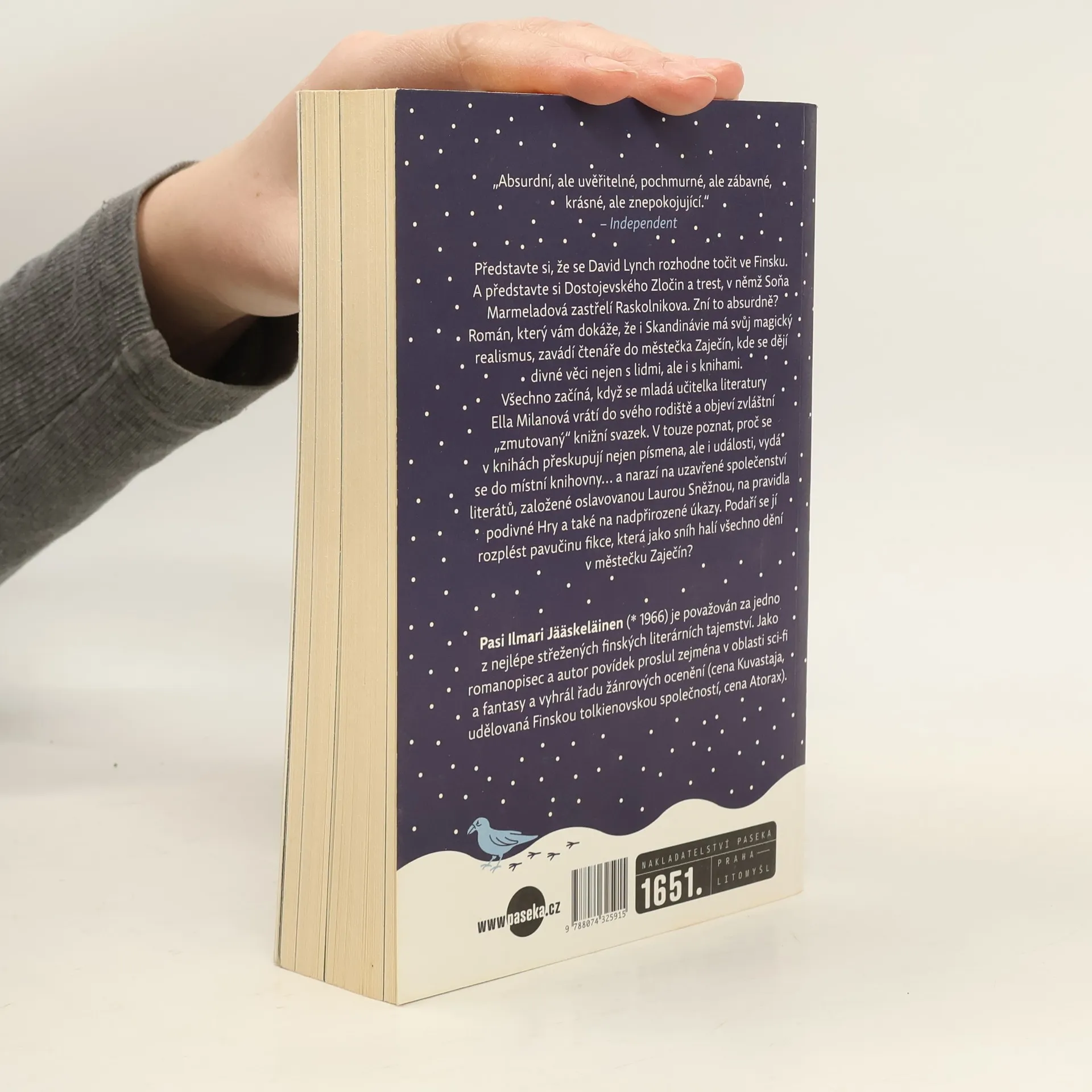 Představte si Lynchův Twin Peaks zasazený do Finska. A představte si Dostojevského Zločin a trest, v němž Soňa Marmeladová zastřelí Raskolnikova. Zní to absurdně? Román, který vám dokáže, že i Skandinávie má svůj magický realismus, zavádí čtenáře do městečka Zaječín, kde se dějí divné věci nejen s lidmi, ale i s knihami. Všechno začíná, když se mladá učitelka literatury Ella Milanová vrátí do svého rodiště a objeví tam zvláštní knižní svazek, který jí vyrazí dech. V místní knihovně se vydá po stopě záhadných událostí... a brzy narazí na uzavřené společenství literátů, založené oslavovanou Laurou Sněžnou, na pravidla podivné Hry a také na nadpřirozené úkazy. Podaří se jí odhalit, co se ve skutečnosti stalo s desátým členem literárního spolku, a rozplést pavučinu všeprostupující fikce?