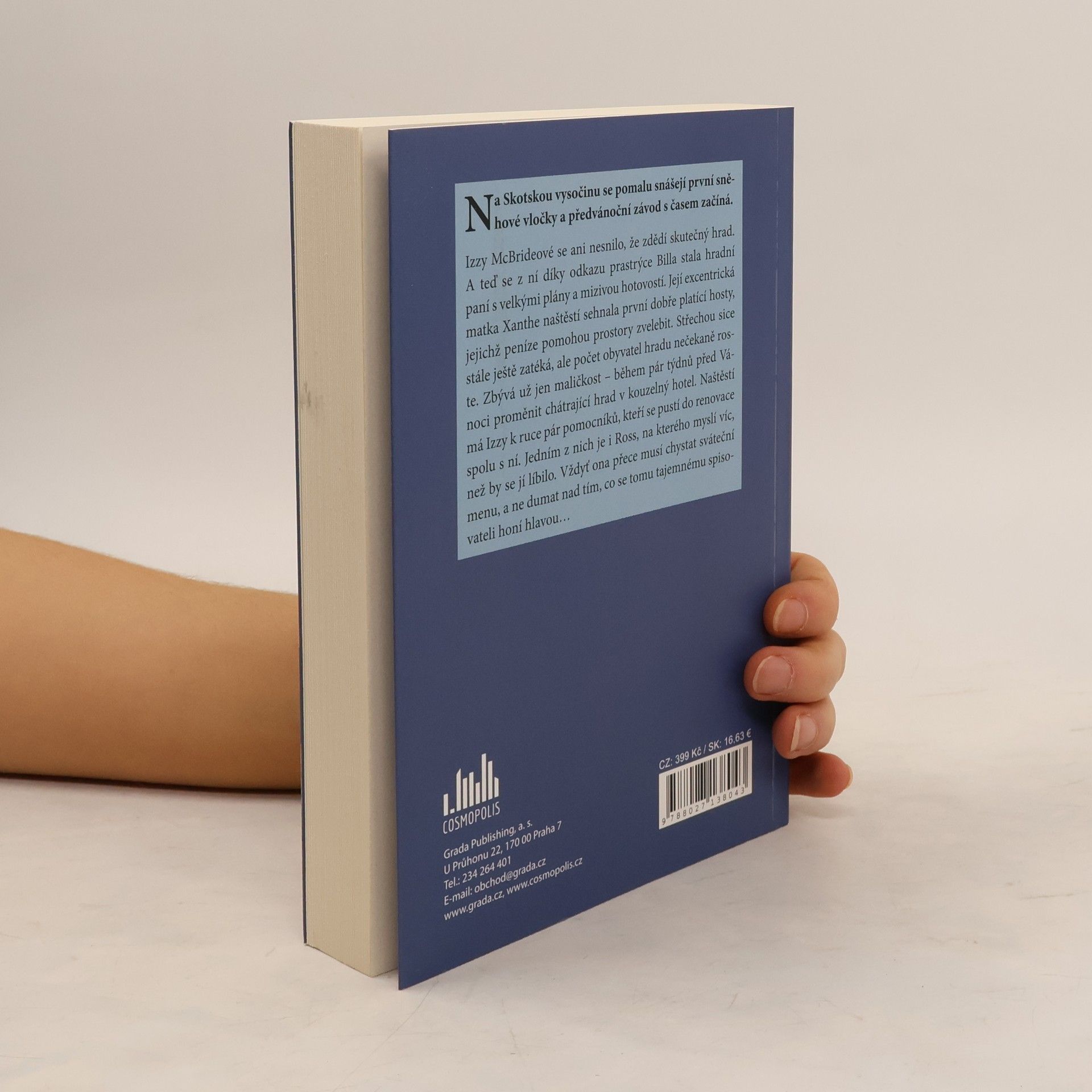 Na Skotskou vysočinu se pomalu snášejí první sněhové vločky a předvánoční závod s časem začíná Izzy McBrideové se ani nesnilo, že zdědí skutečný hrad. A teď se z ní díky odkazu prastrýce Billa stala hradní paní s velkými plány a mizivou hotovostí. Její excentrická matka Xanthe naštěstí sehnala první dobře platící hosty, jejichž peníze pomohou prostory zvelebit. Střechou sice stále ještě zatéká, ale počet obyvatel hradu nečekaně roste. Zbývá už jen maličkost – během pár týdnů před Vánoci proměnit chátrající hrad v kouzelný hotel. Naštěstí má k ruce pár pomocníků, kteří se pustí do renovace spolu s ní. Jedním z nich je i Ross, na kterého Izzy myslí víc, než by se jí líbilo. Vždyť ona přece musí chystat sváteční menu, a ne dumat nad tím, co se tomu tajemnému spisovateli honí hlavou…
